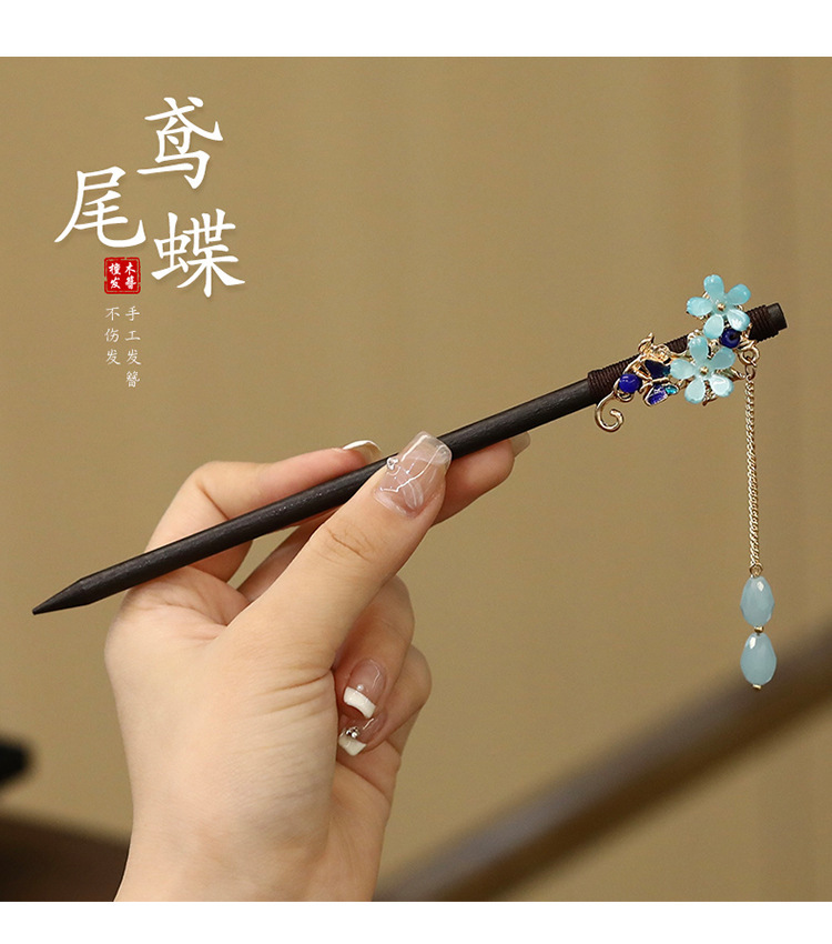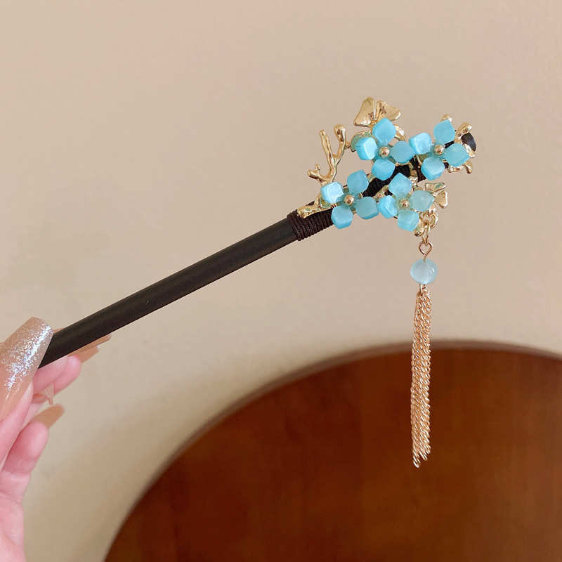 7# hairpin-black-branch-tassel flowers