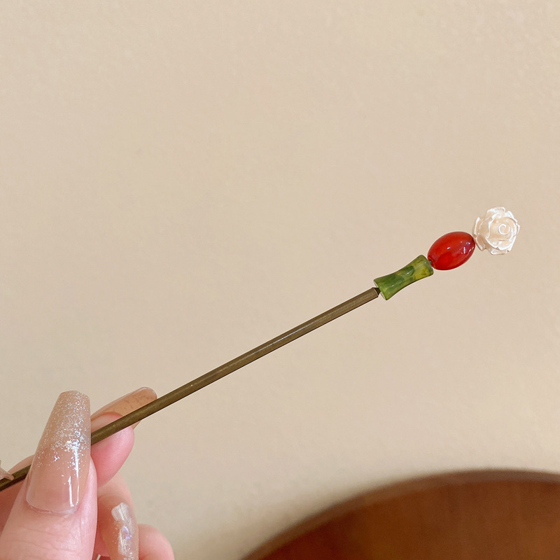 5# hairpin-black-white flower-red round beads