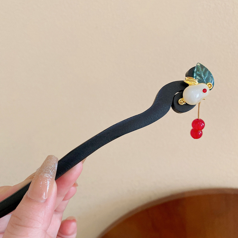 10# hairpin-black-jade hare tassel