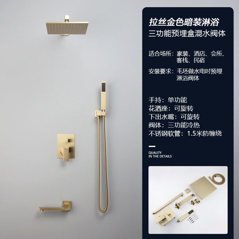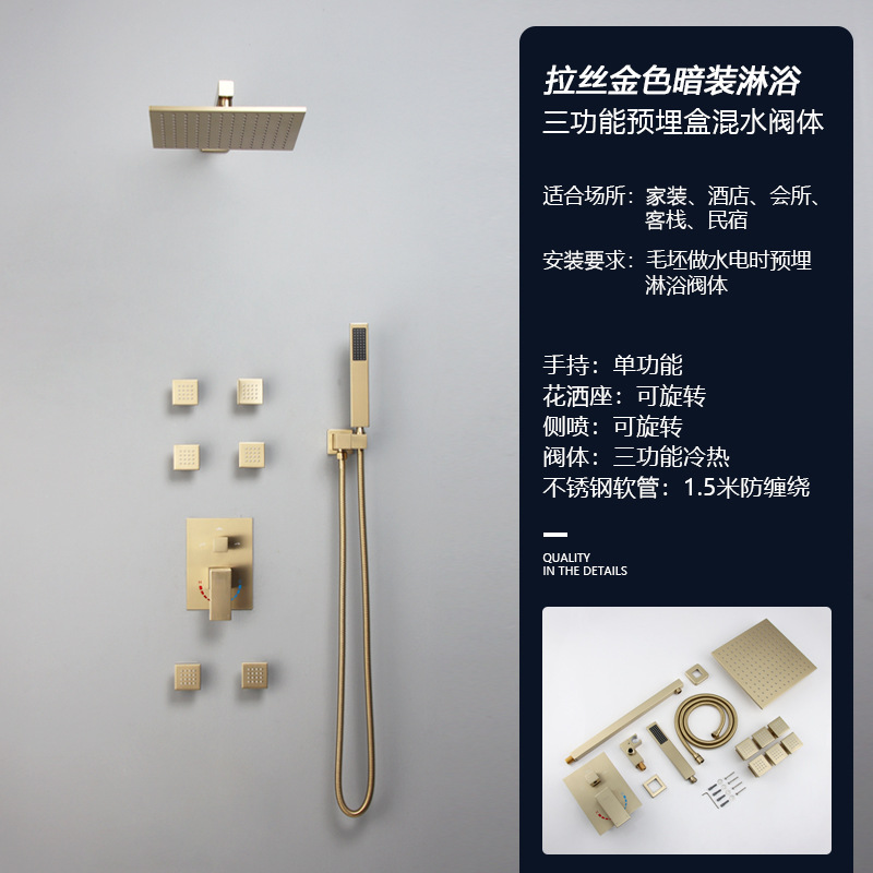 golden concealed three-gear side spray 10-inch top spray