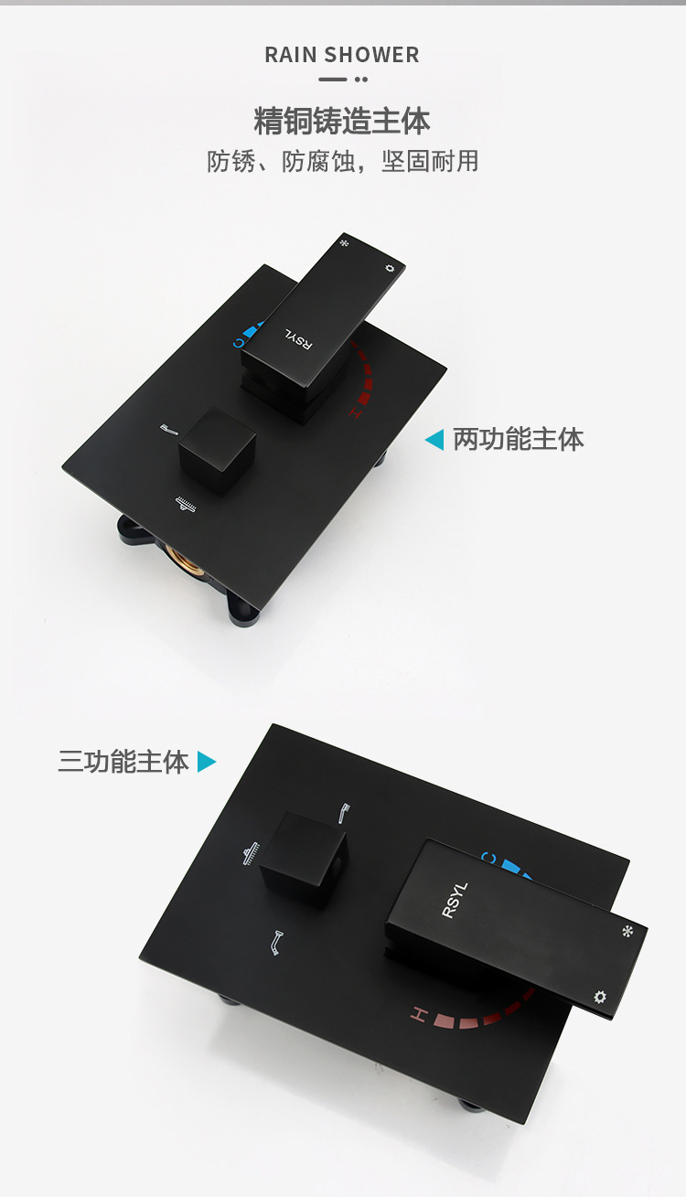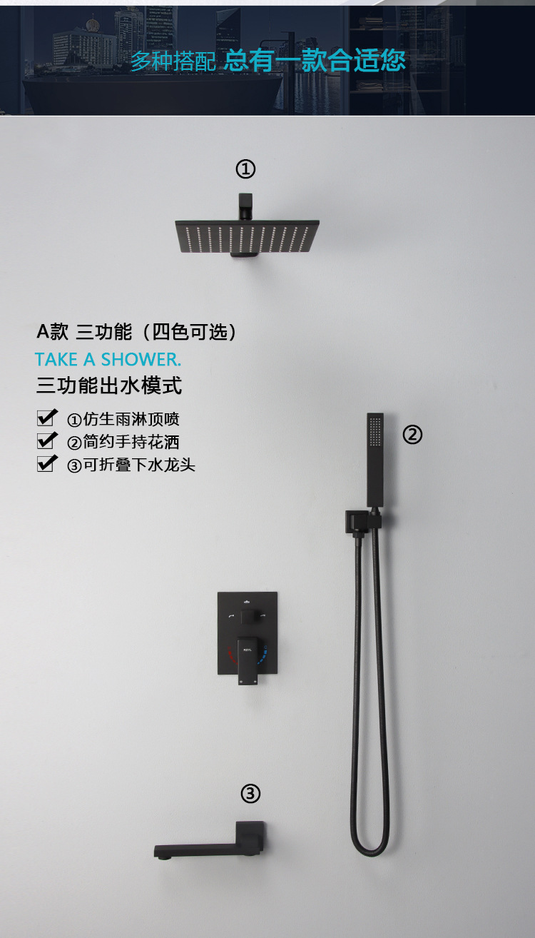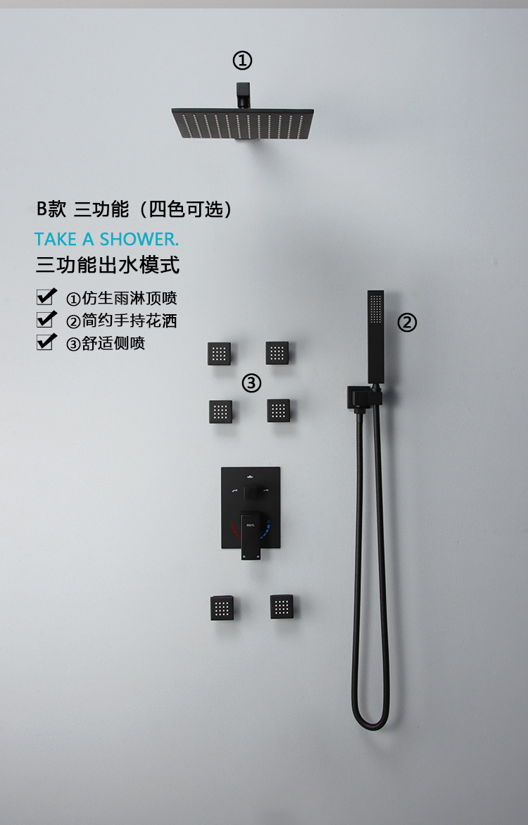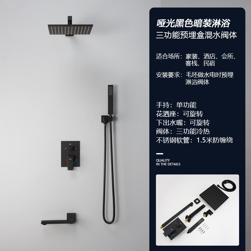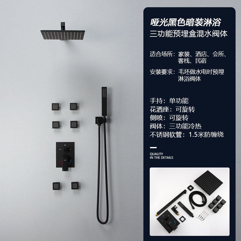 black concealed three-gear side spray 10-inch top spray