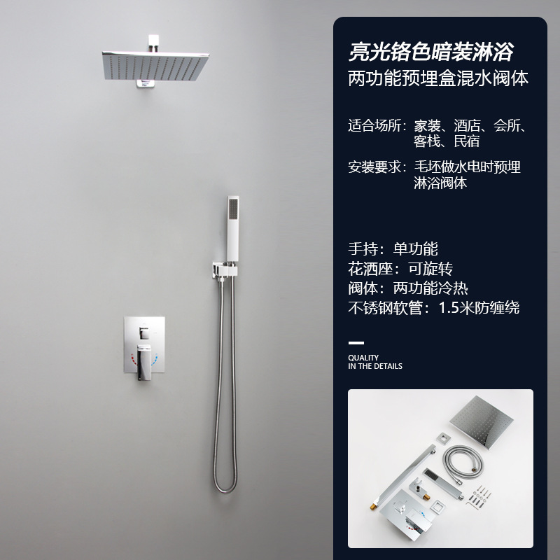 bright chrome concealed three-gear side spray 10-inch top spray