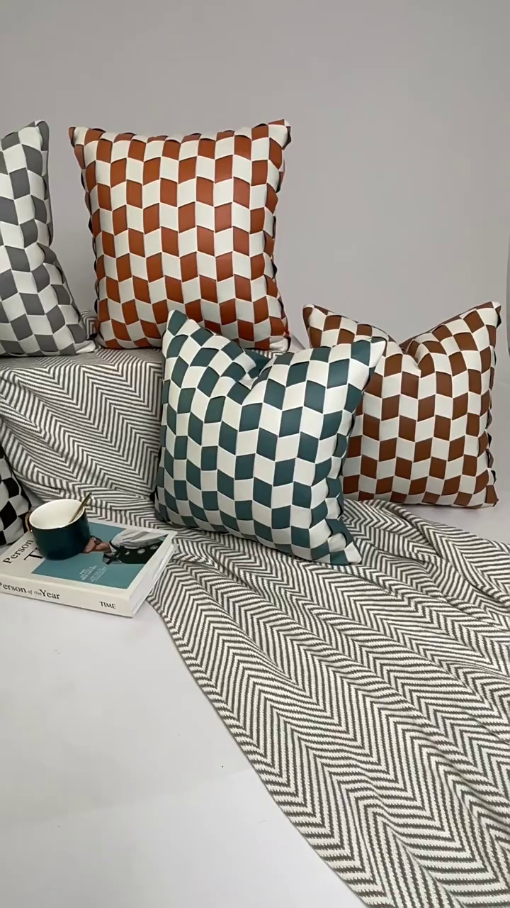 Amazon Simple Handmade Woven Diamond Lattice Houndstooth Luxury Pillow Cover Living Room Pillows Cushion Nordic Cushion Cover