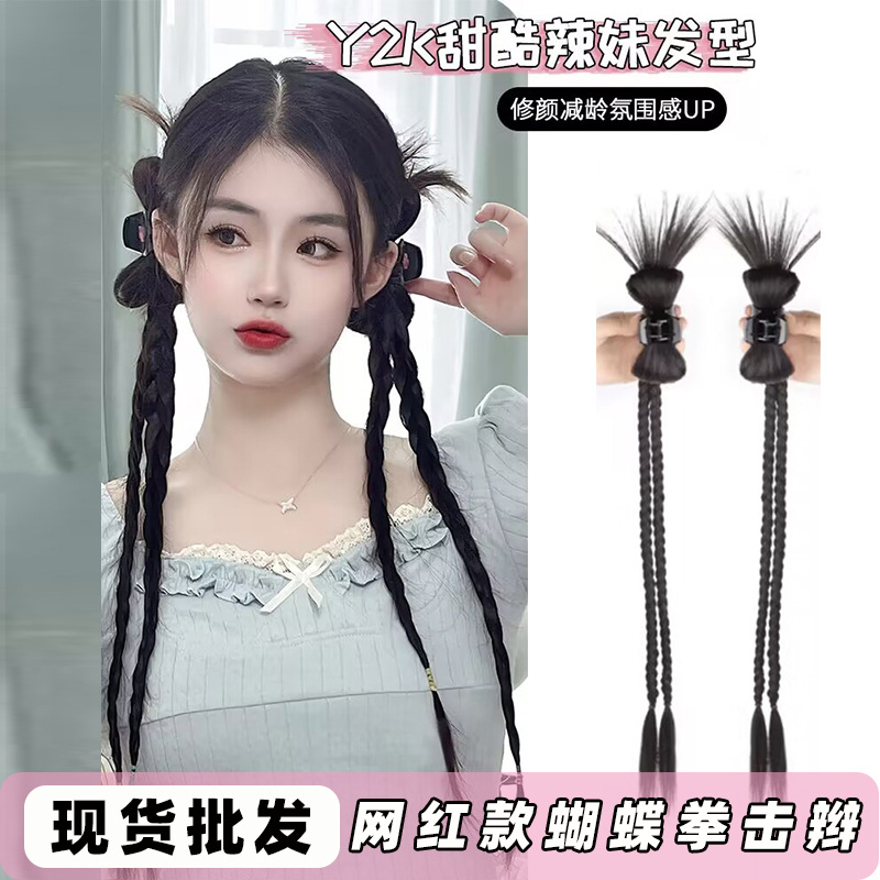 Boxing Braid Wig Female Horse Tail Subnet Red Twist Braid Three-Strand Braid Dreadlocks Pair Ponytail Kick Shuttlecock Horse Tail