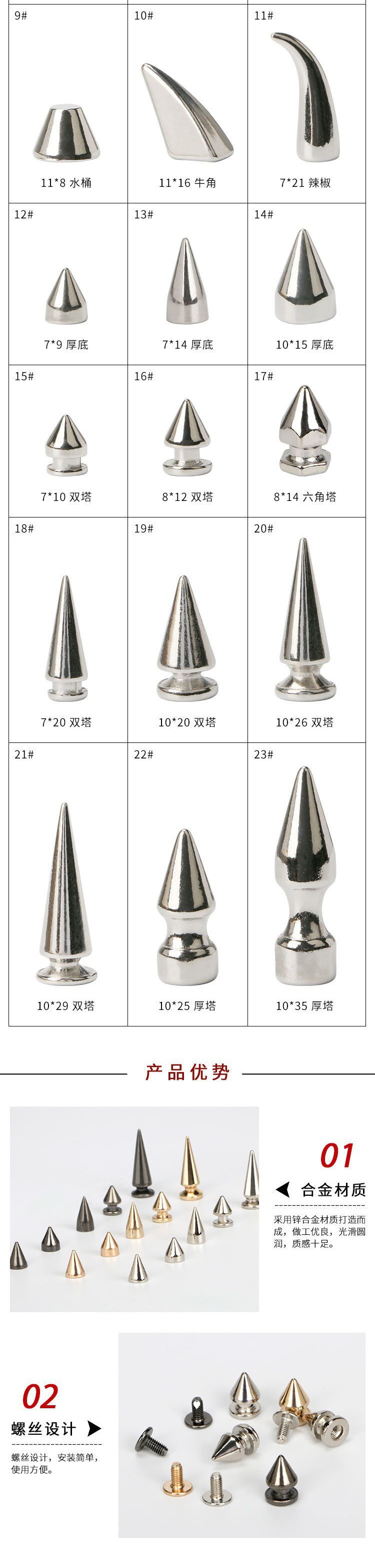 silver (5 sets)-23#(thick tower 10*35)