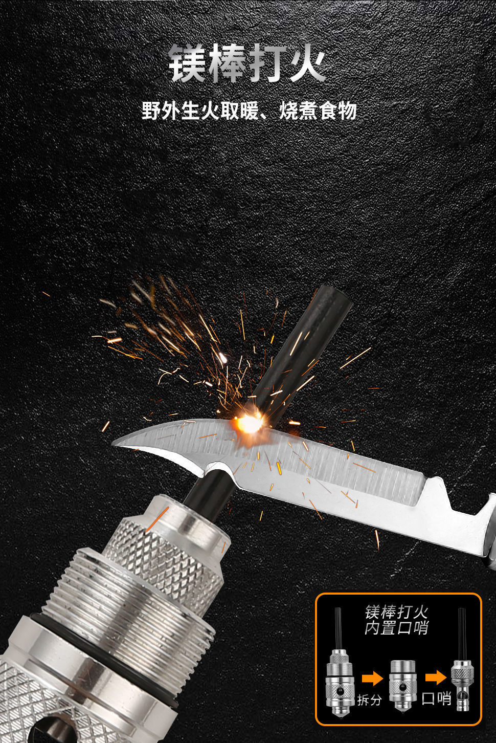 three-section sea god shovel knives + whistle + flint + cone + fork