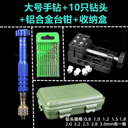 large hand drill +10 drill + aluminum alloy vise + box