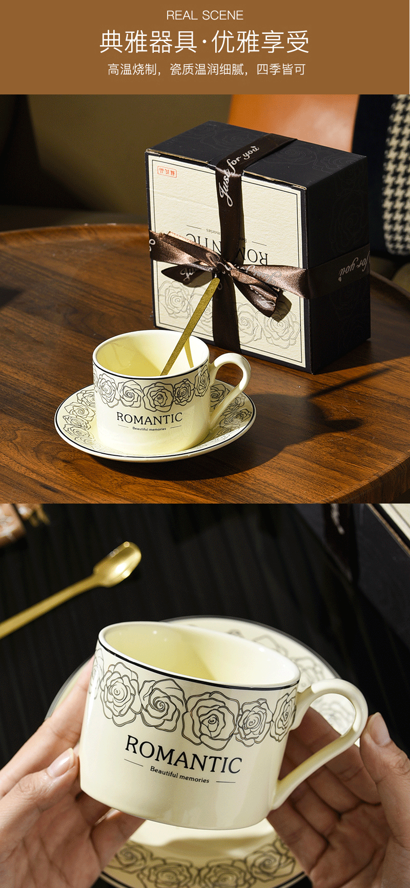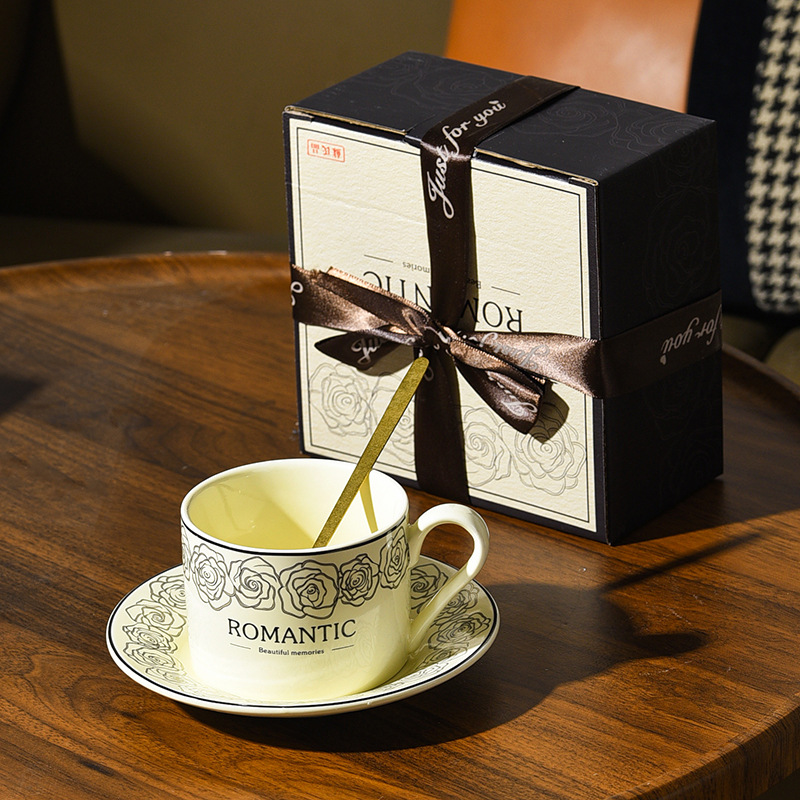 hepburn style rose ceramic coffee set suit mug restaurant latte latte art water cup