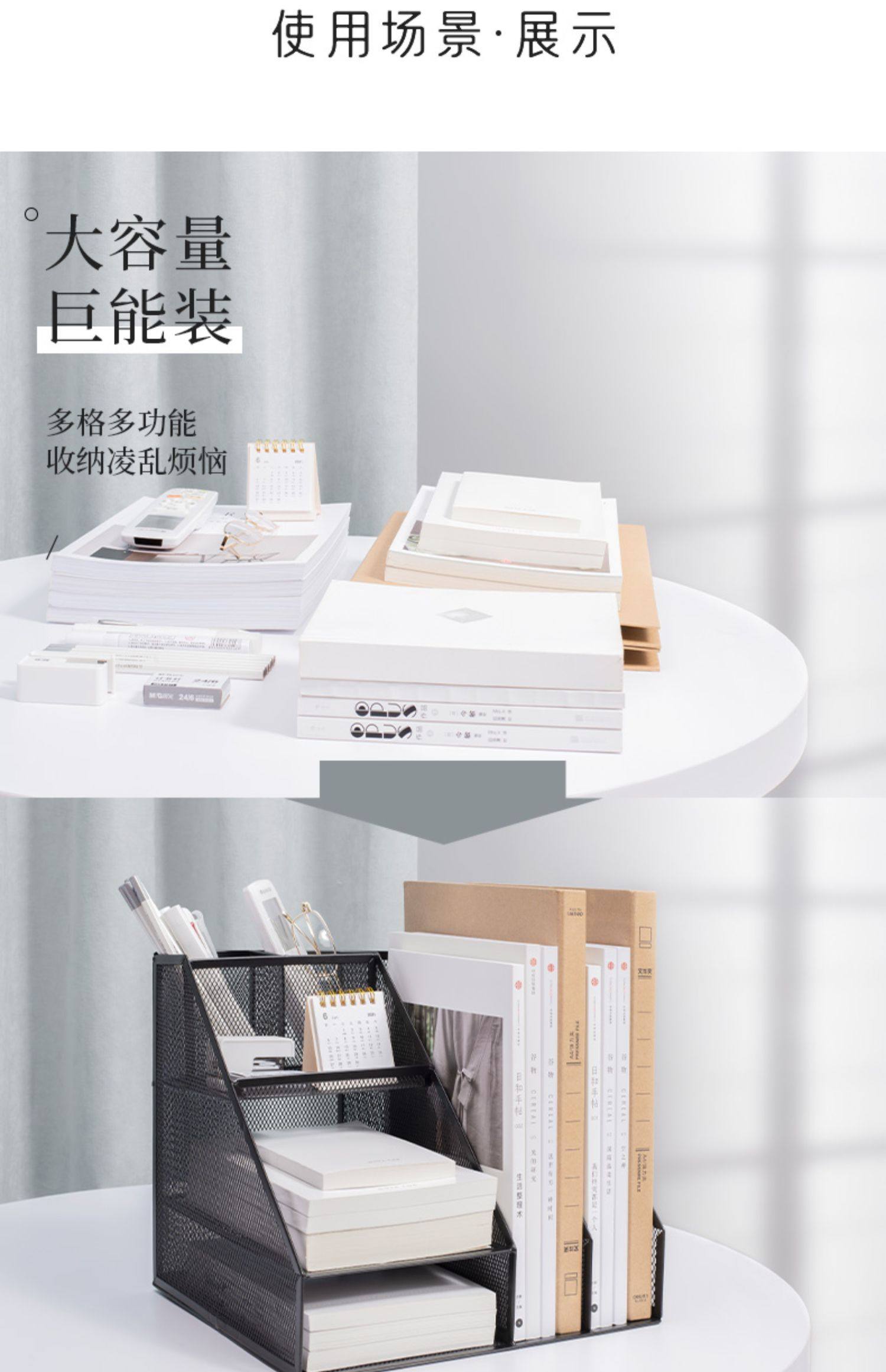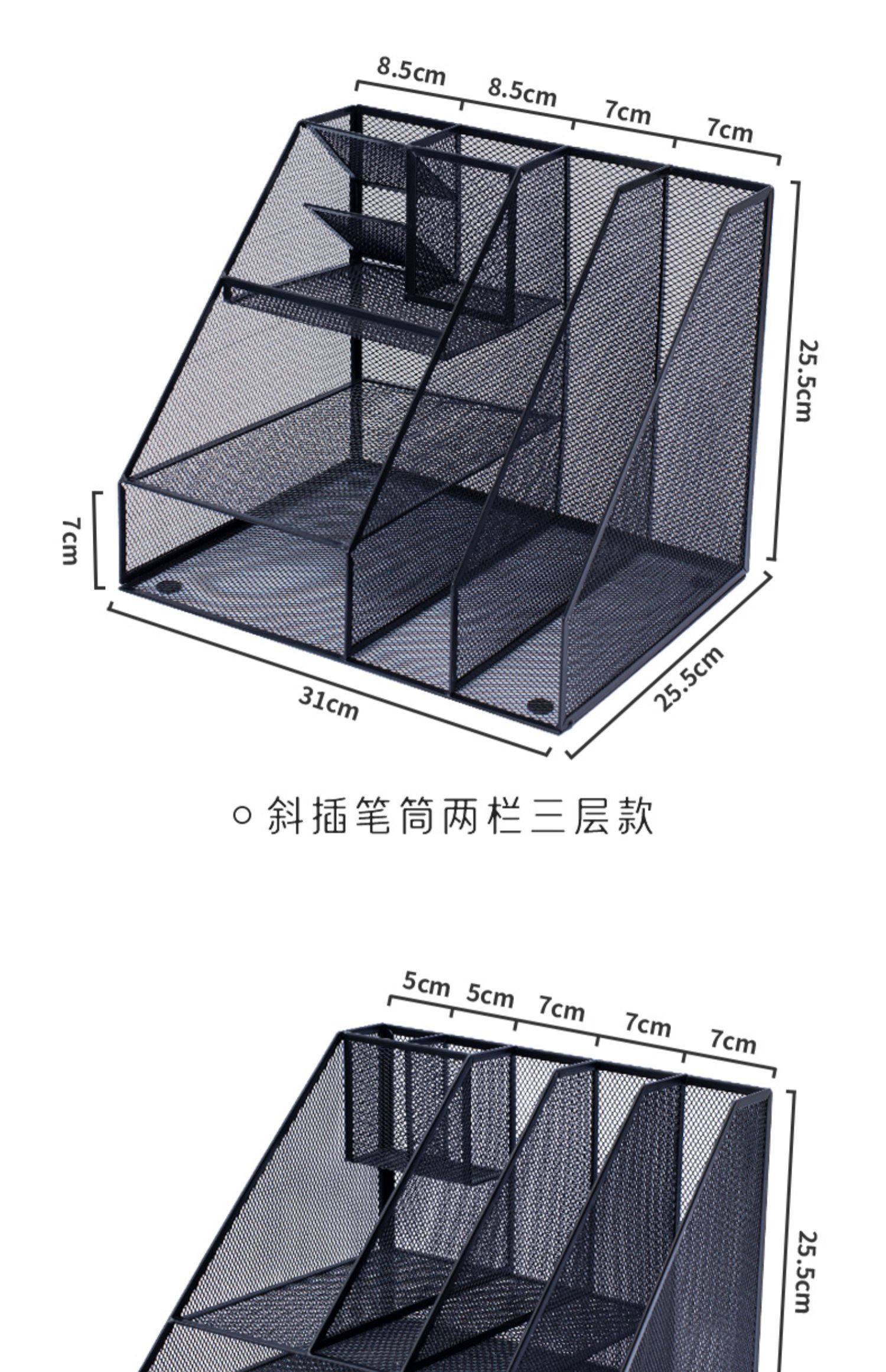 two-column three-layer metal document rack (no assembly required) thickened double pen holder black