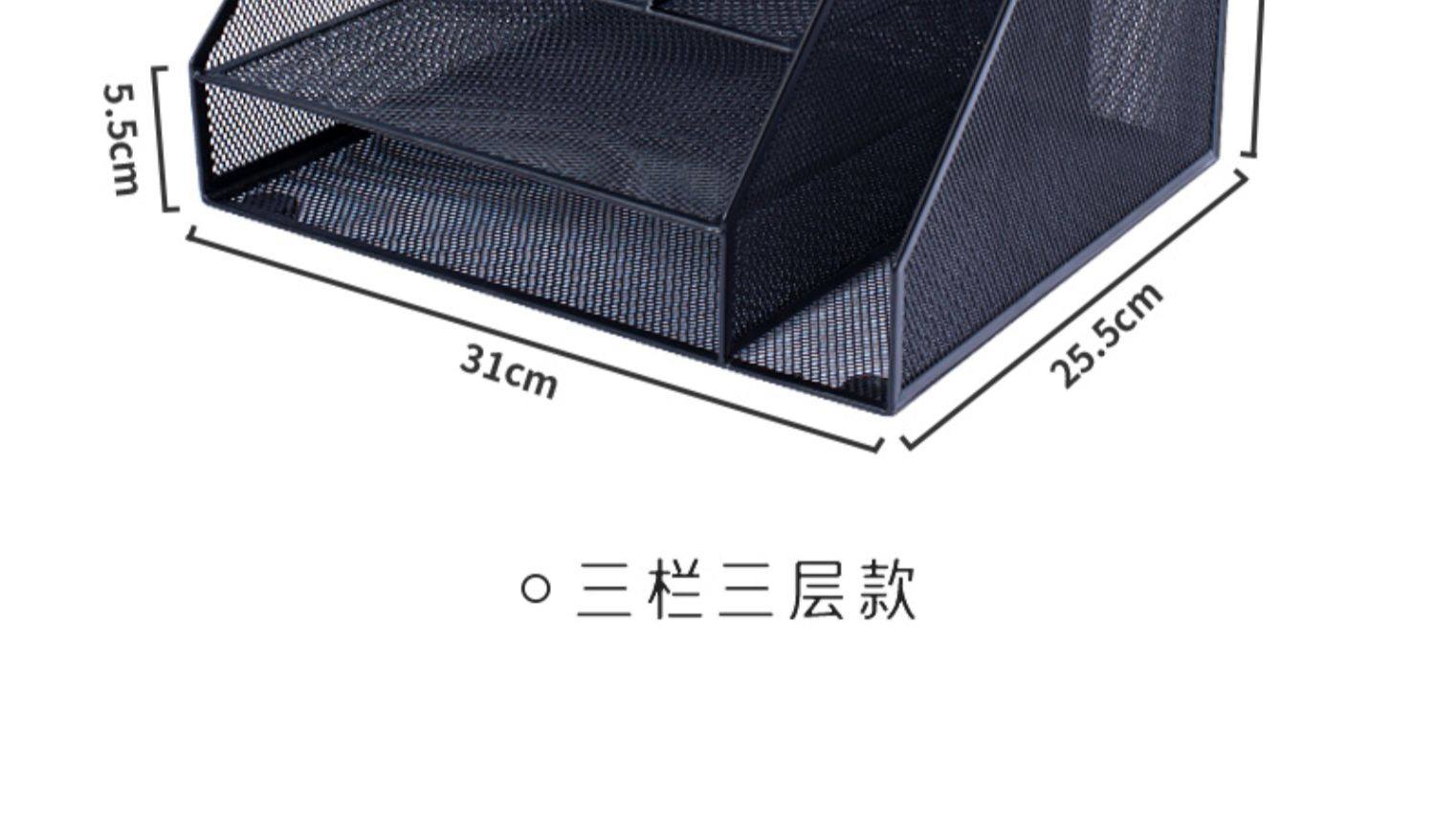 three-column three-layer metal document rack (no assembly required) thickened double pen holder black