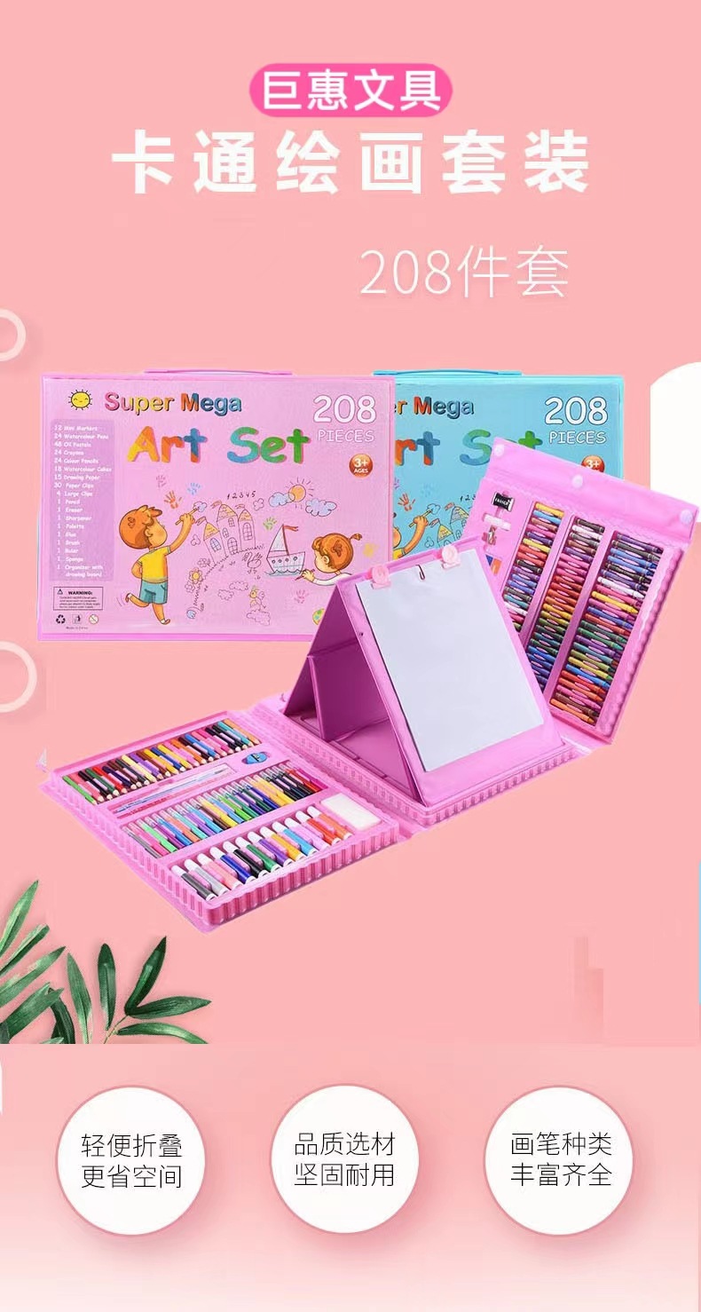 School Season 208 Pieces Student Art Supplies Crayon Children Painting Kit with Easel Board Watercolor Crayon Batch