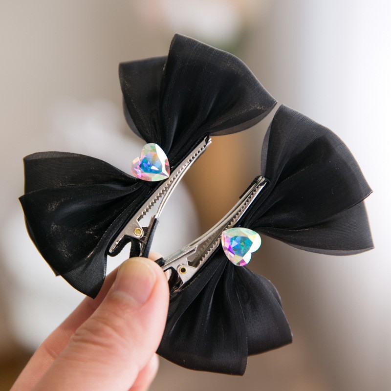 0972 snow yarn love heart a pair of hairclips black
