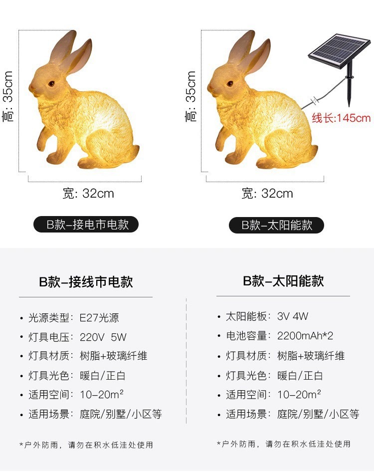 solar outdoor luminous rabbit garden villa courtyard decoration decorative landscape lighting animal modeling lawn lamp