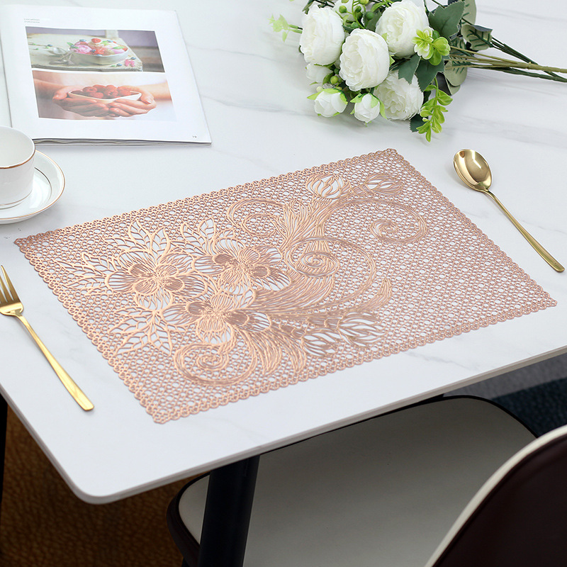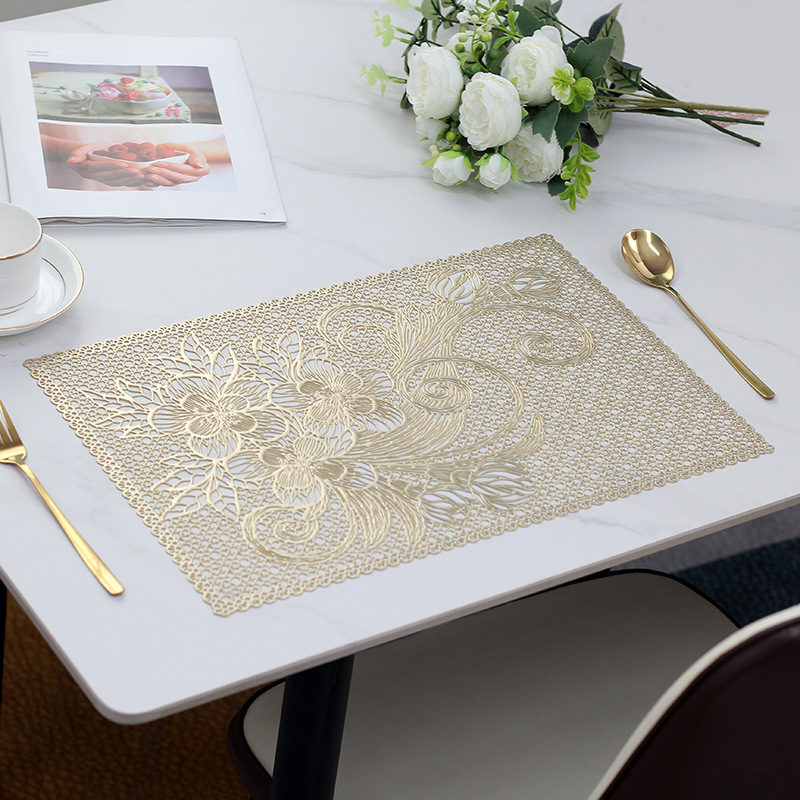 placemat pvc new exquisite flower hollow placemat pvc waterproof oil-proof stain-resistant scratch-resistant hotel household western-style placemat