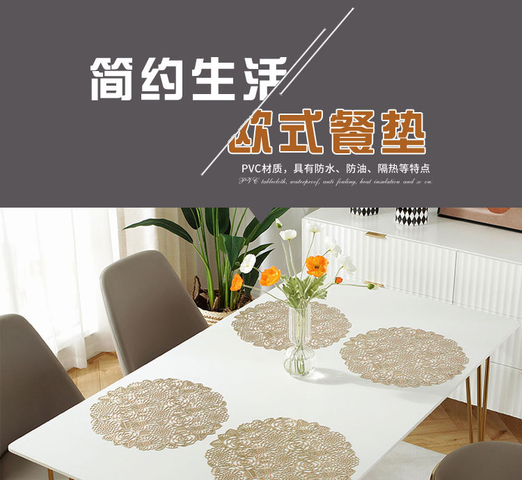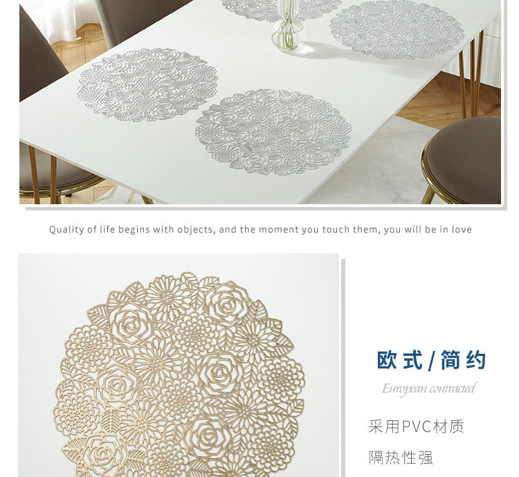 placemat nordic style placemat gilding heat proof mat creative style hollow pvc placemat for western food round restaurant decorative pad