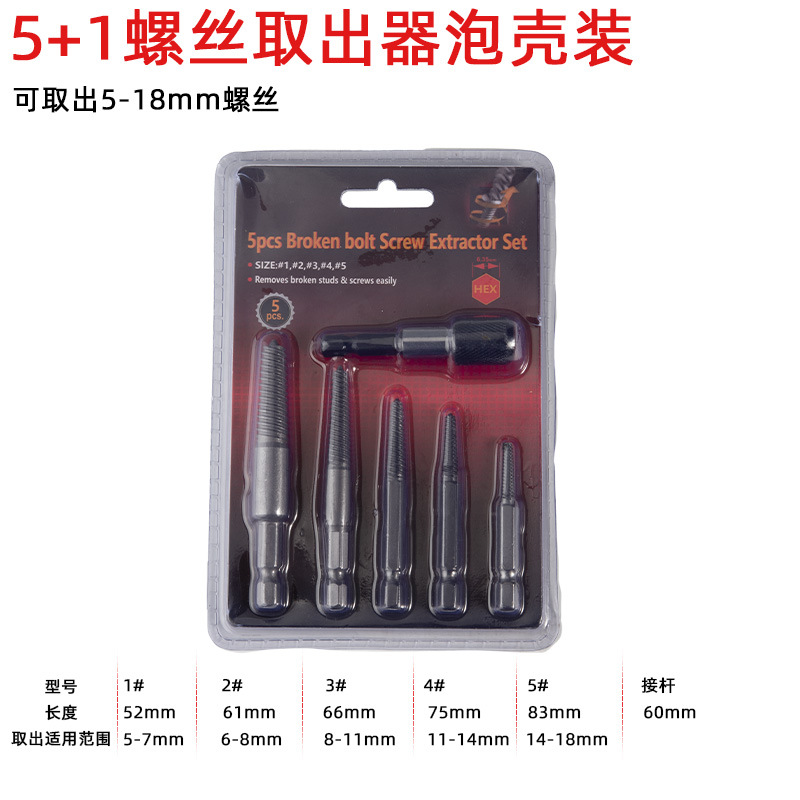hexagonal handle 5+1 piece set extractor [blister pack]]