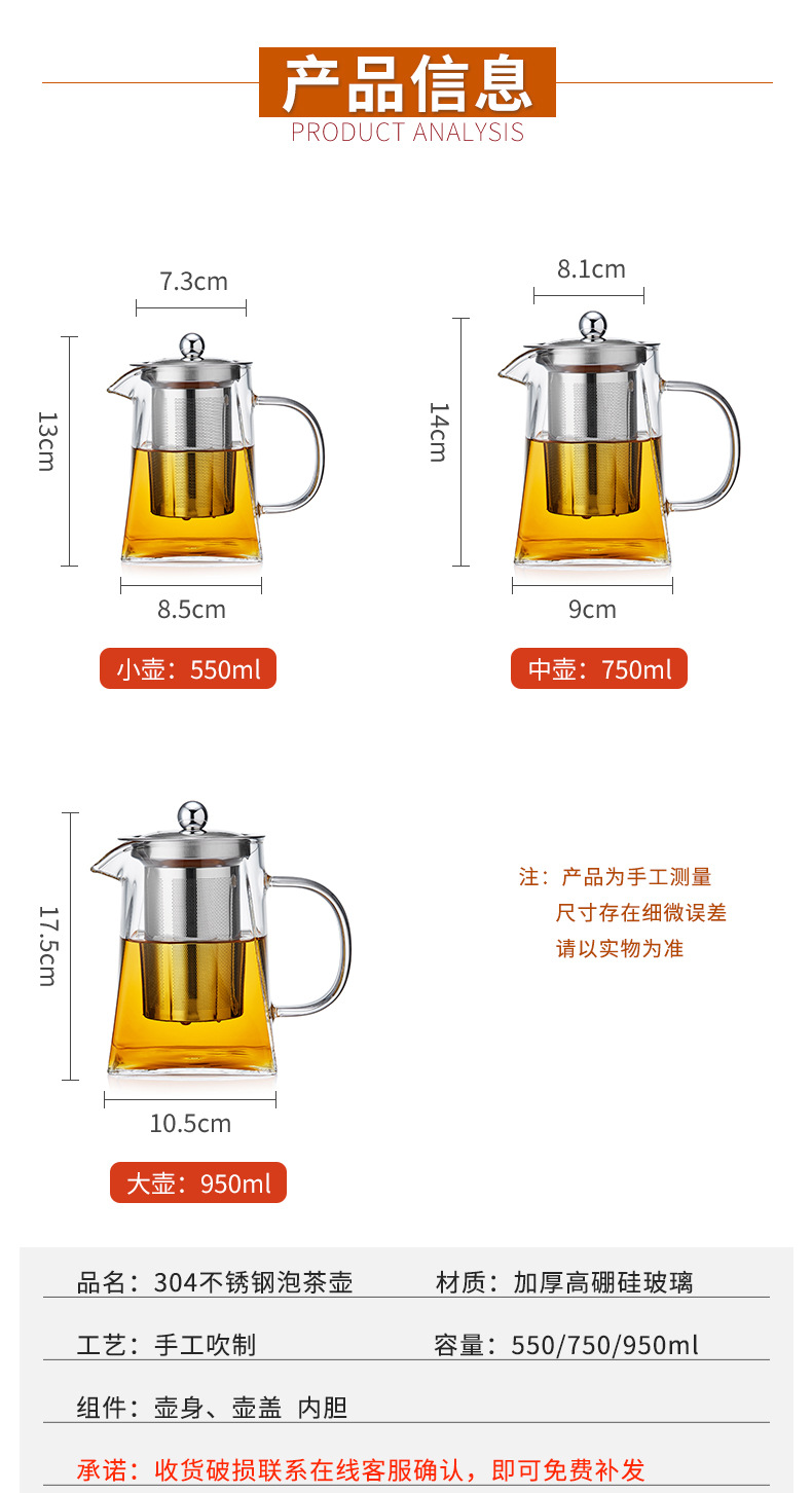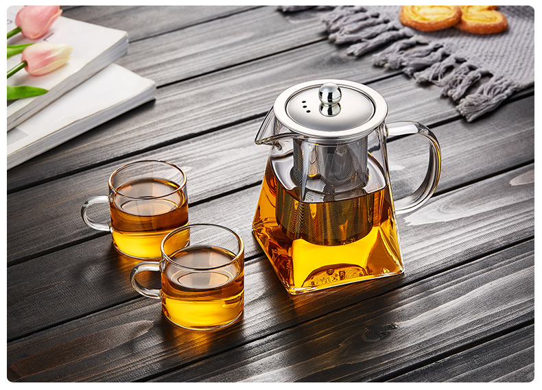 Glass Square Teapot Stainless Steel Screen Filter Teapot Small Square Glass Cup High Temperature Resistant Square Glass Teapot