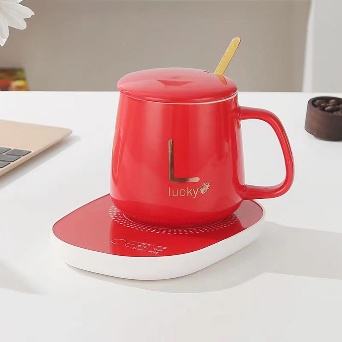 red coaster + cup + spoon + lid (foam packaging)