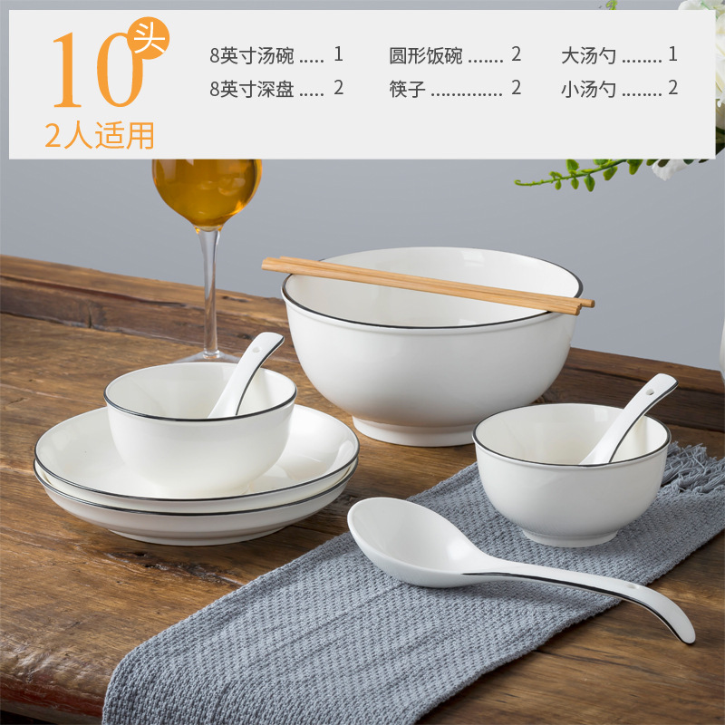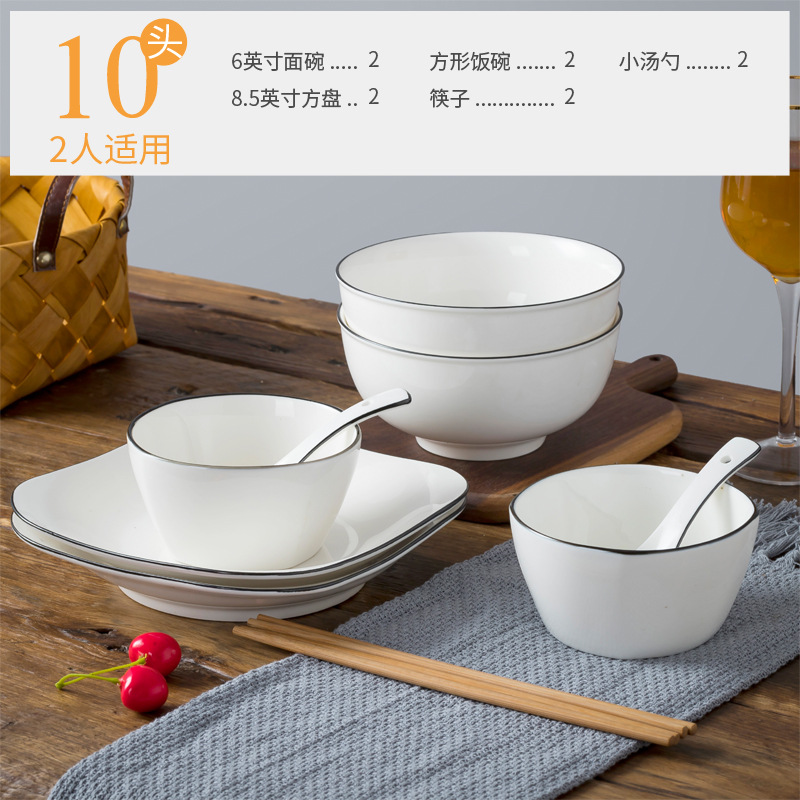 10 heads-2 noodle bowl 2 square rice bowls 2 square plate 2 spoons 2 chopsticks (large)