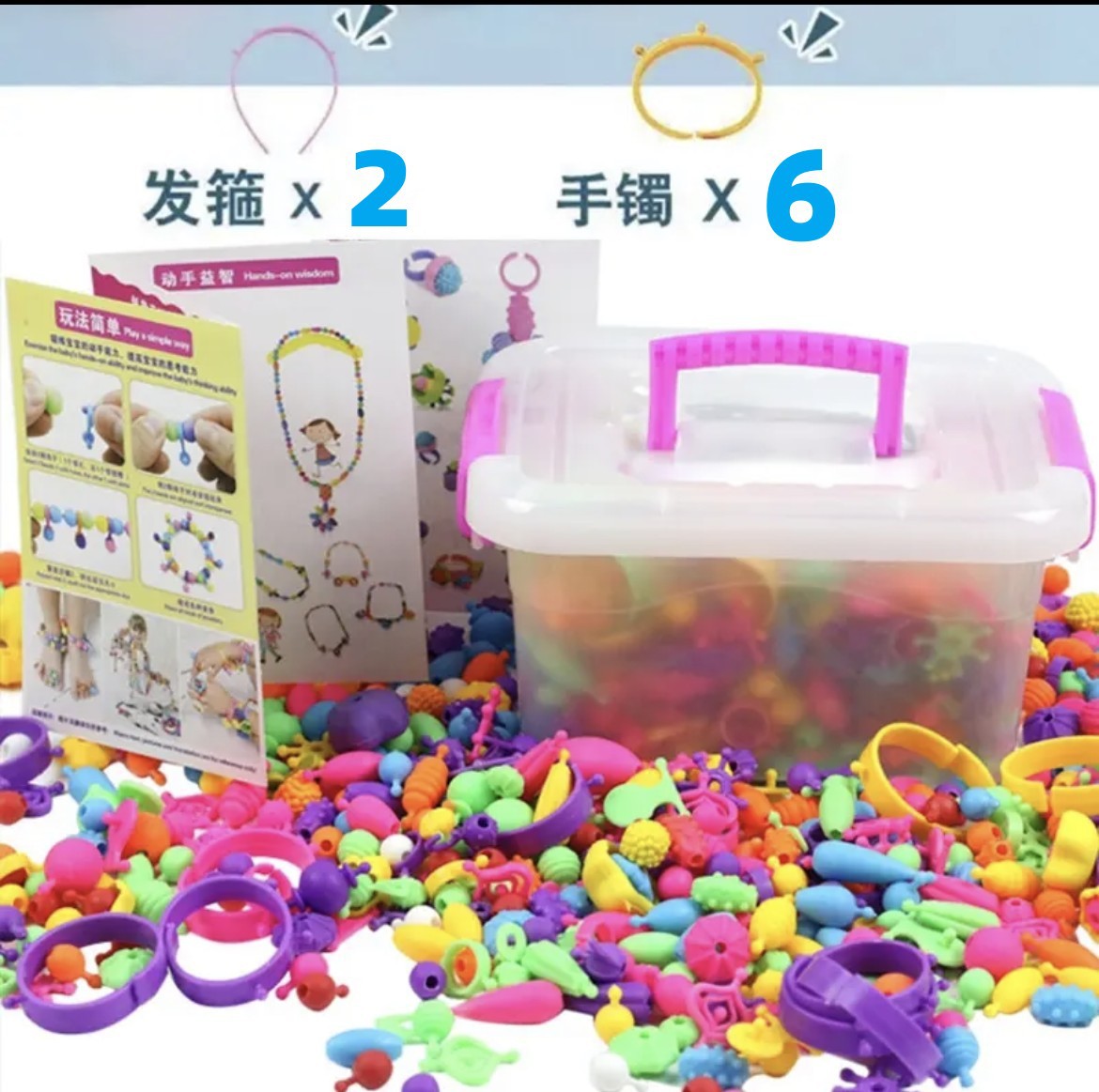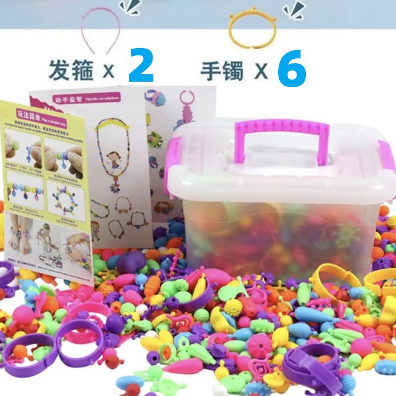 600 tablets popper beads [storage box] with-6 bracelets +2 hair bands