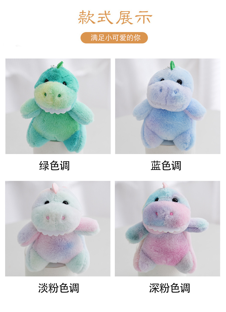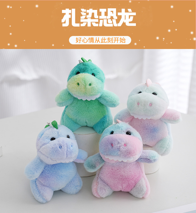 cartoon plush little doll tie-dyed dinosaur keychain plush toy schoolbag backpack plush toy cross-border doll
