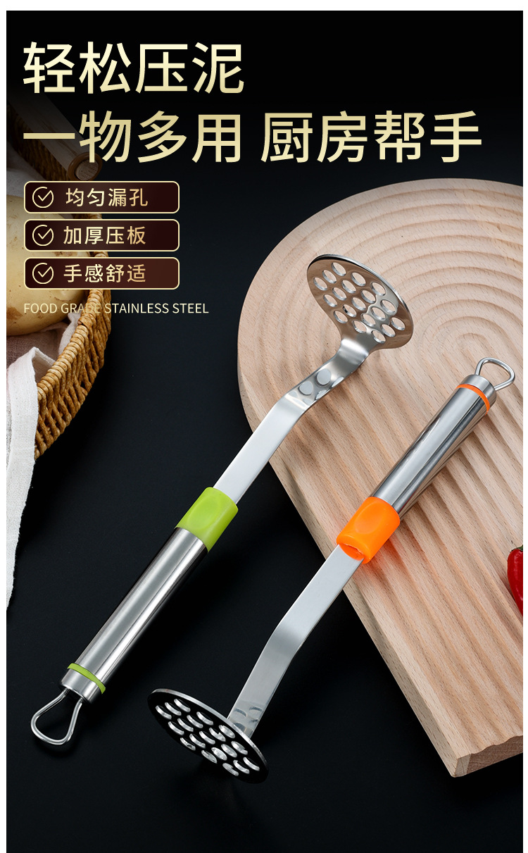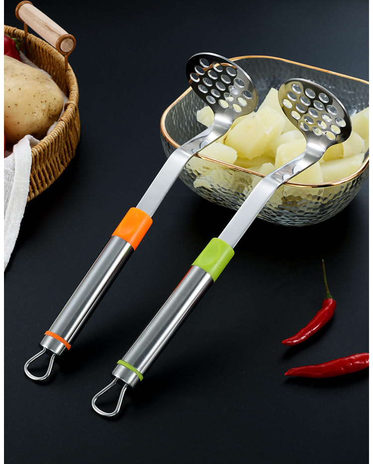 Household Stainless Steel Pressure Mashed Garlic Spoon Potato Meatball Spoon Meshed Garlic Device Kitchen Gadget Multifunctional Manual Triturator