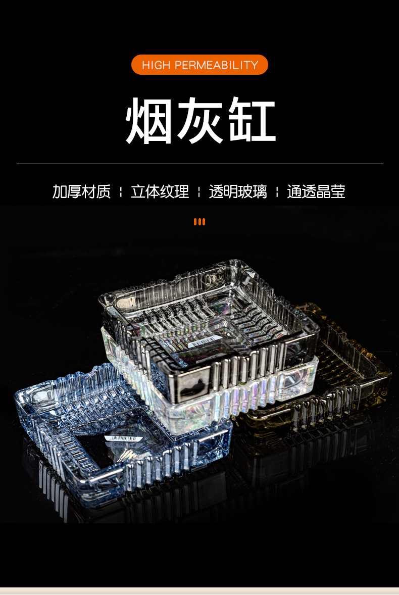 Wholesale Home Crystal Glass Ashtray Small Exquisite Square Ashtrays Light Luxury Living Room Creative Hotel Ashtray