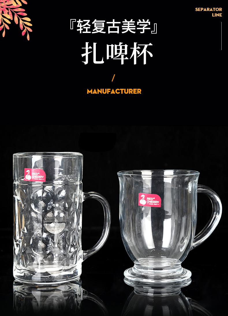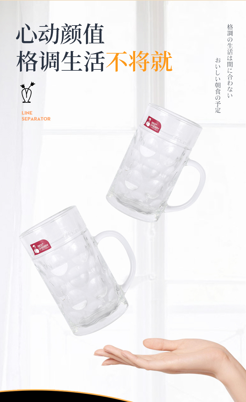 0.5L Dot Beer Mug Glass Beer Mug Large Capacity Commercial with Handle Beer Cup Cool Water Pot Juice Cup