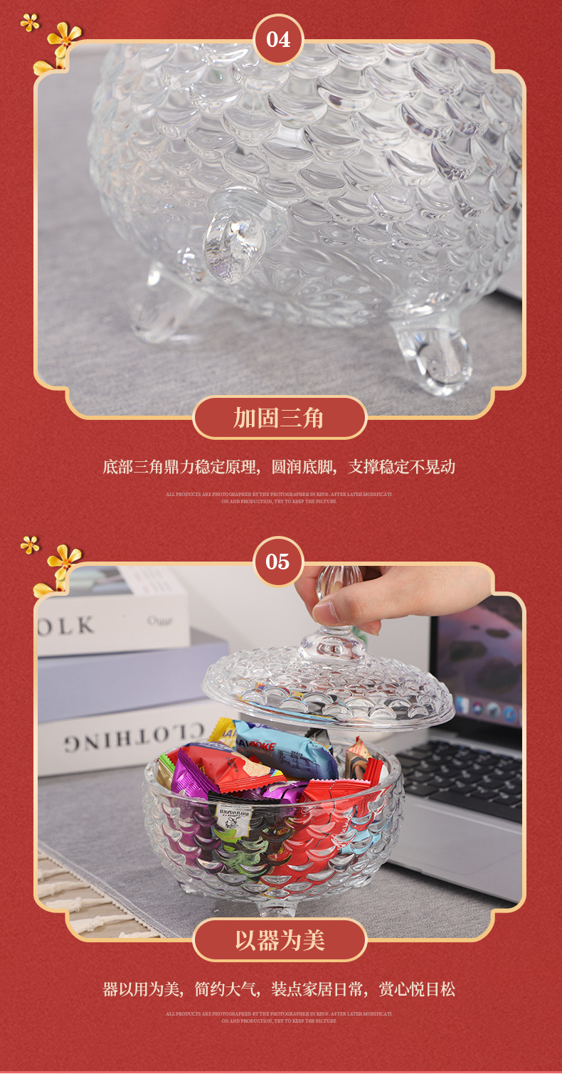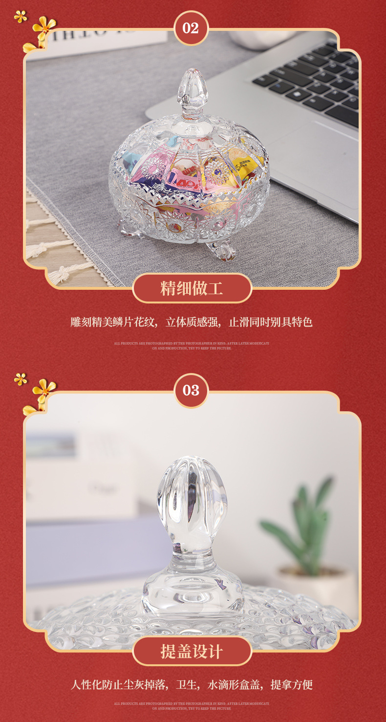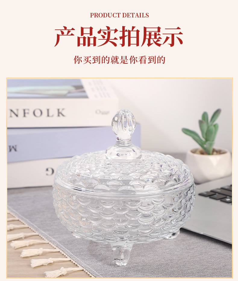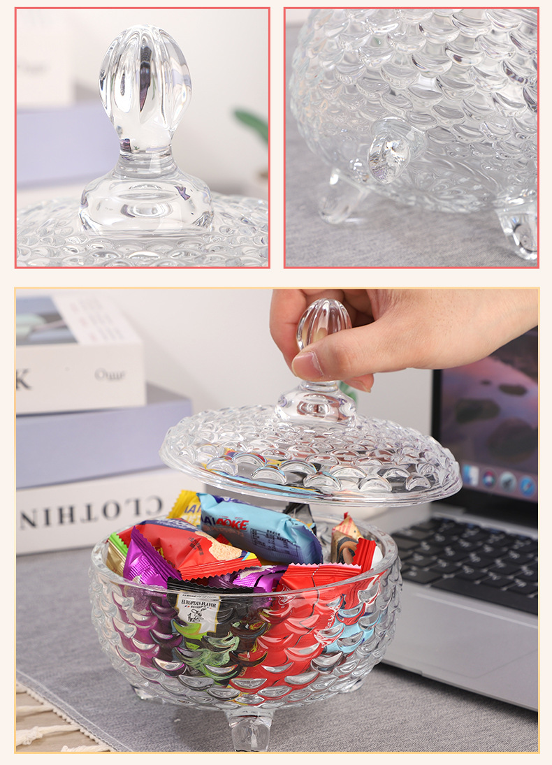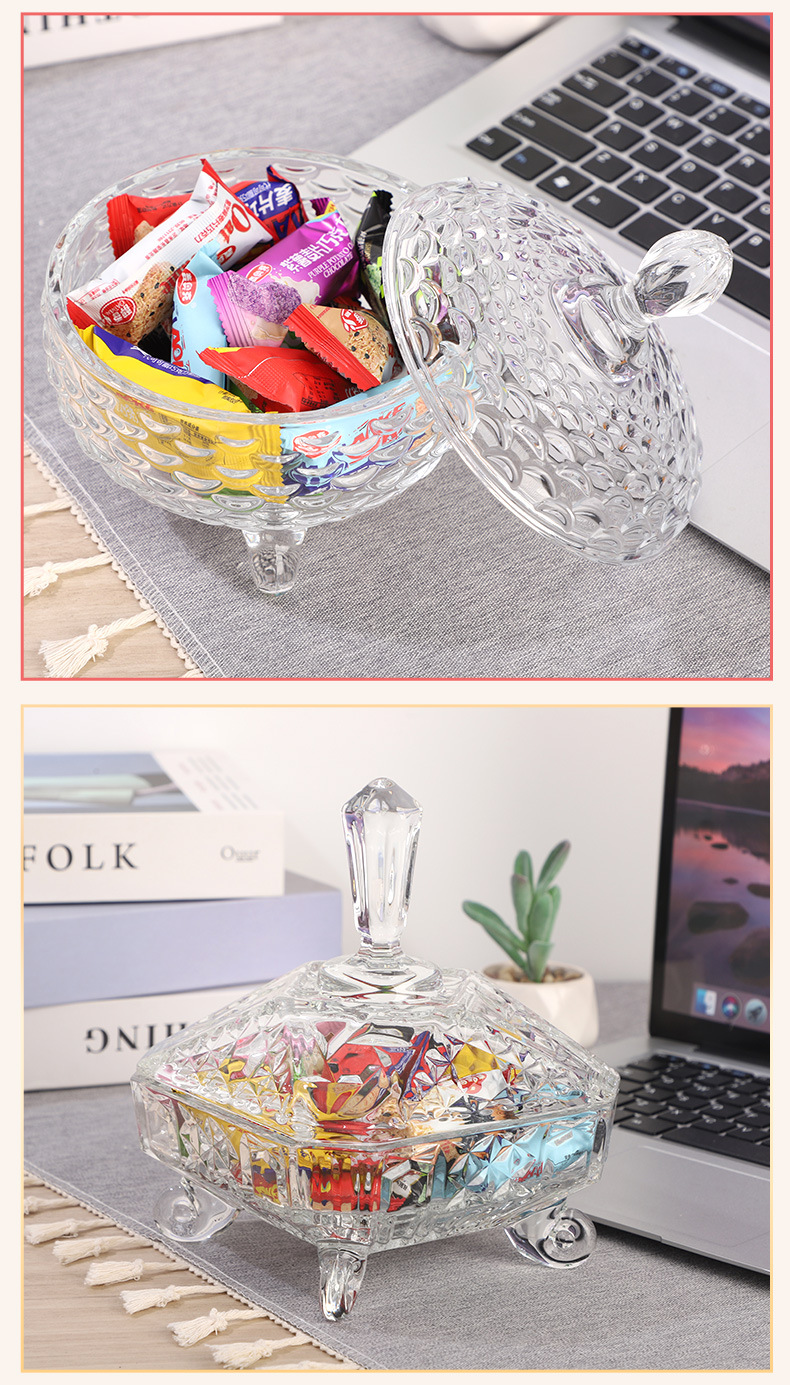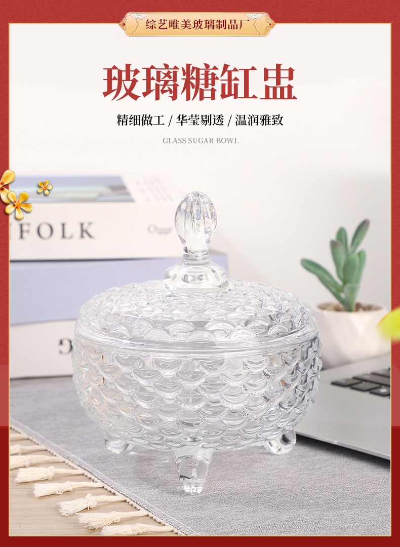 European-Style Glass Sugar Bowl ''Candy Box Snack Storage Jar Creative Dried Fruit Jar Tea Table Decoration Wholesale