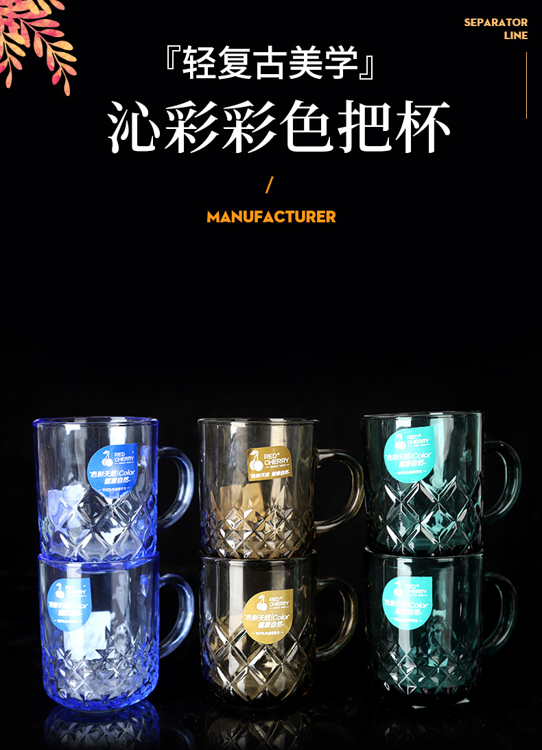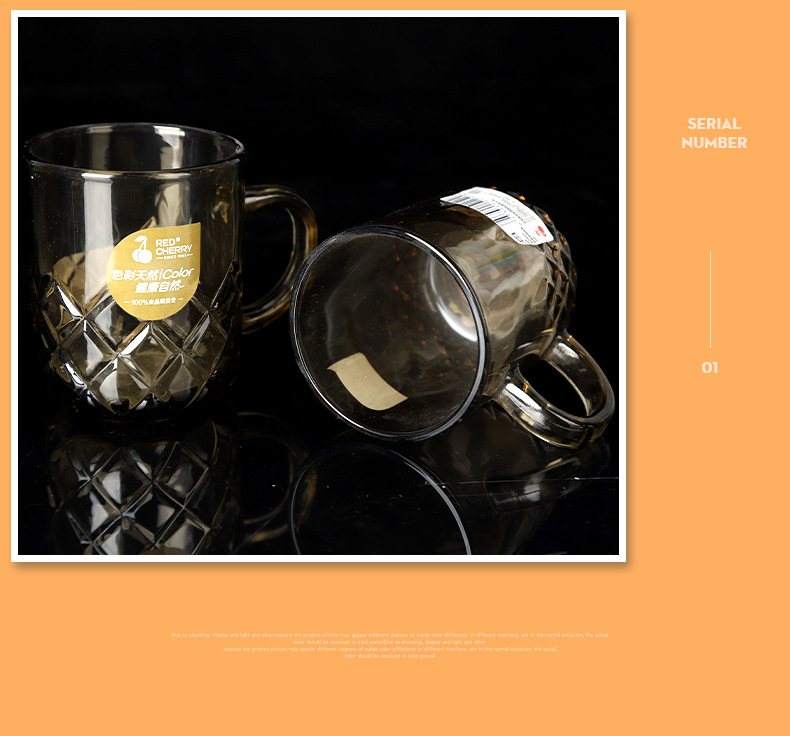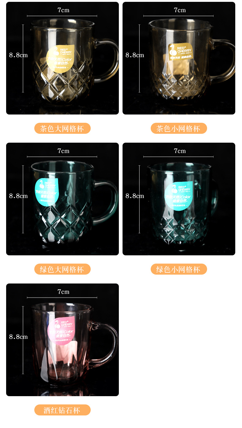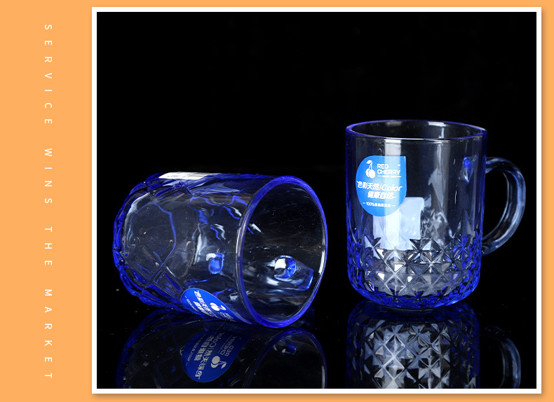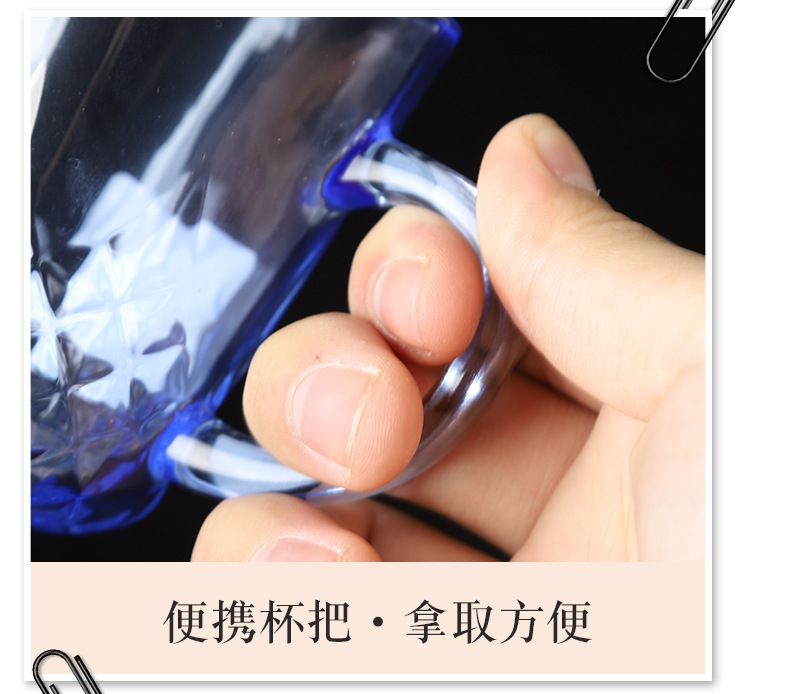 Wholesale Music Flower Color Handle Cup Handle Glacier Cup Household Cup Frosted Color Glacier Pattern Glass