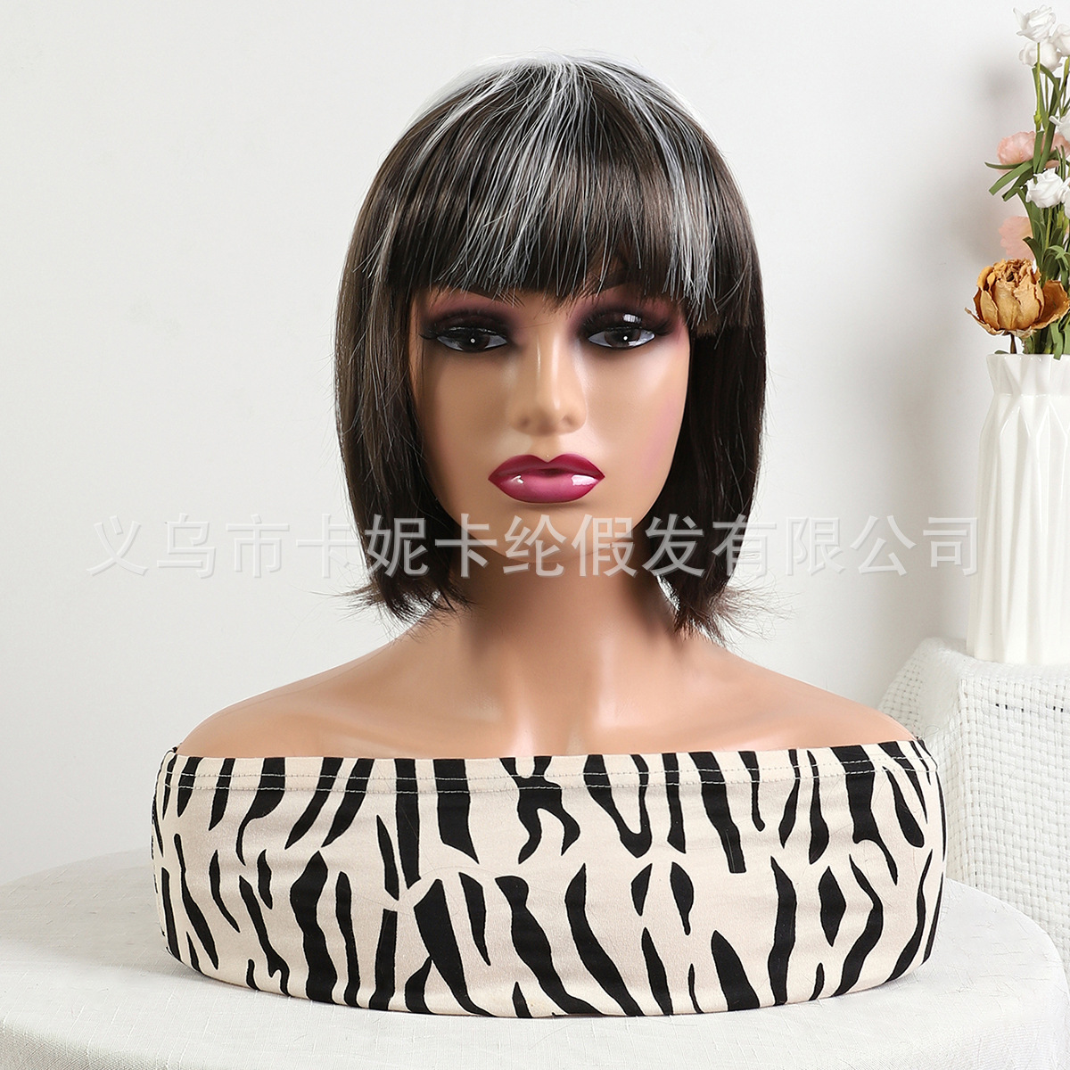 new student hair qi bangs black and white highlight dyed paper net bob haircut in stock wholesale wig products