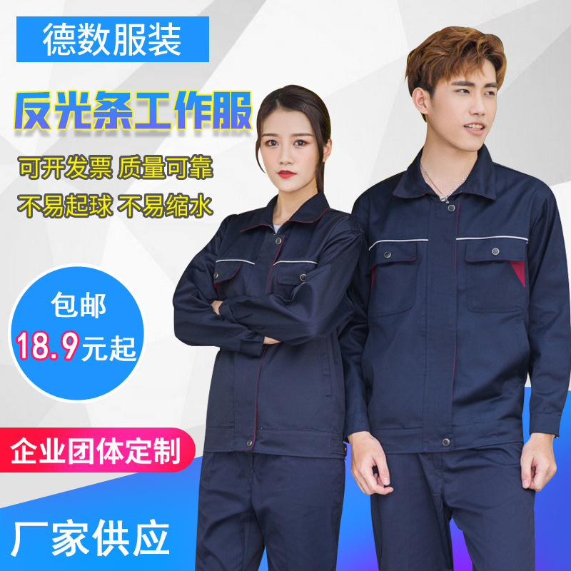 Wholesale Men's and Women's Work Clothes Wear-Resistant Spring and Autumn Auto Repair Long-Sleeve Suit Labor Protection Clothing Printing Labor Overalls Set
