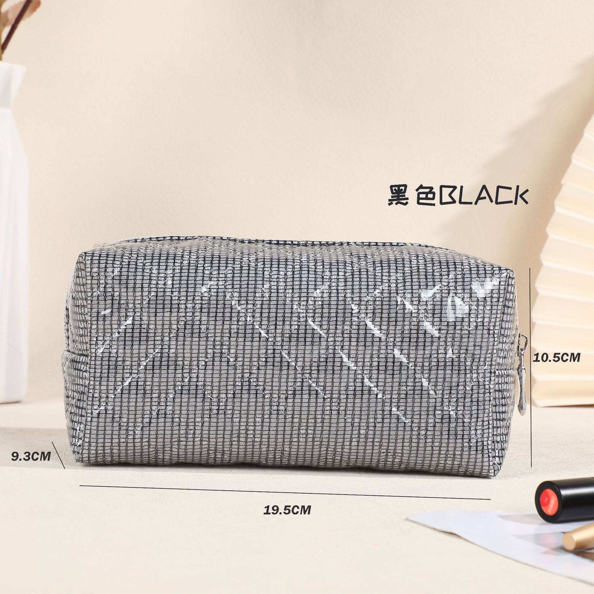 ins casual pillow-shaped storage bag colorful plaid silver silk makeup tools storage large capacity simple fashion