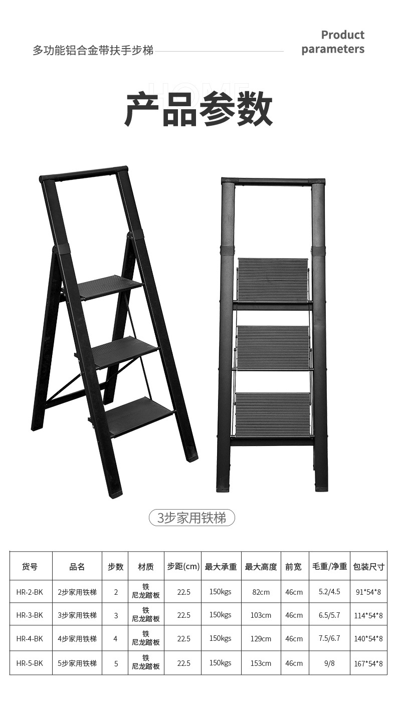 [aluminum alloy] 3 steps with armrest-black