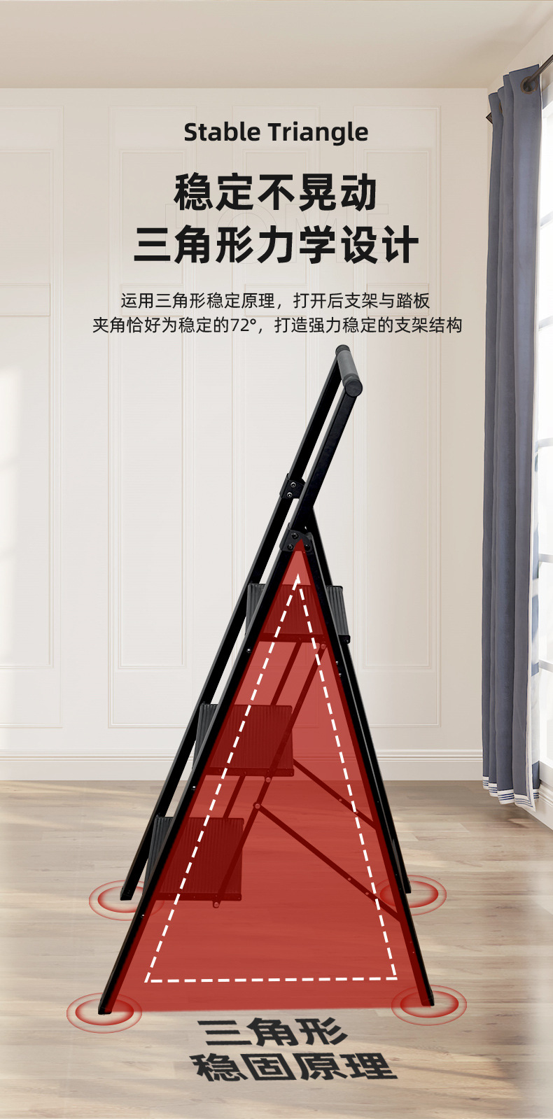 [aluminum alloy] 4 steps with armrest-black