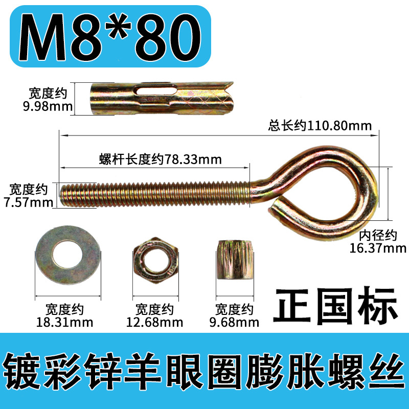 75fi Wholesale Galvanized Sheep Eye Expansion Ring Hook with Ring Internal Expansion Screw Factory Direct Expansion Screw Explosion M6