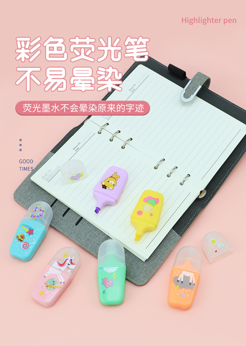 890 mini fluorescent pen marking pen light color series multi-color oblique head color pencil student notes eye protection