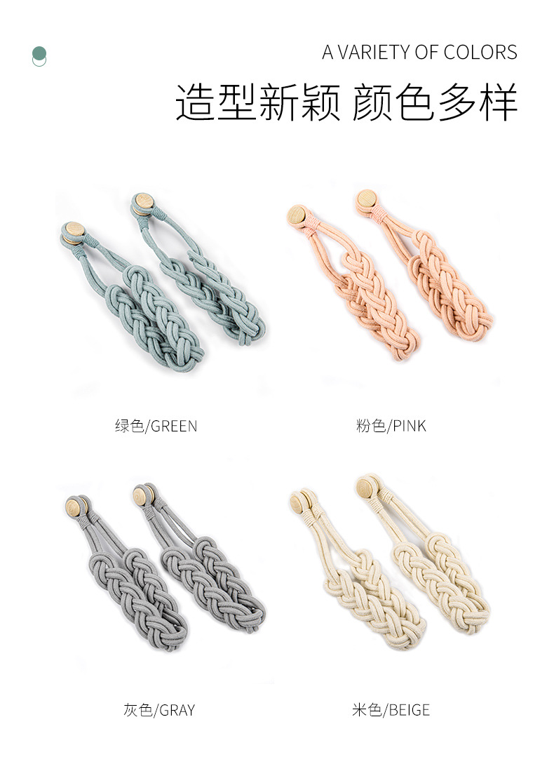 new modern simple round wood woven cotton curtain magnetic button magnetic snap wholesale punch-free installation-free curtain bandage