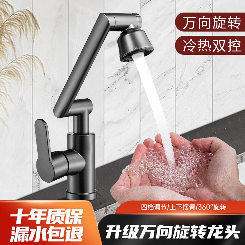 Universal Faucet Mechanical Arm Household Kitchen Hot and Cold Wash Basin Wash Basin Bathroom Wash Basin Faucet