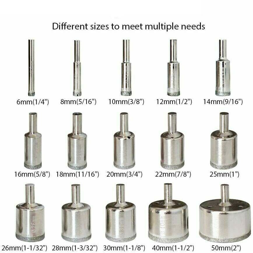 15-Piece Diamond Hole Saw Drilling Bit Set Cutting Tool 6-50mm Tile Marble Glass Perforator