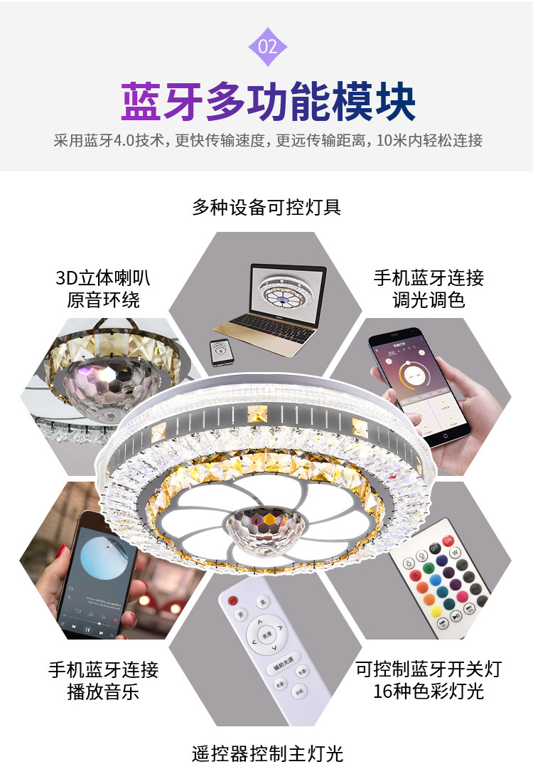 crystal bedroom light modern simple led ceiling light living room light luxury bluetooth music romantic wedding room new lamps