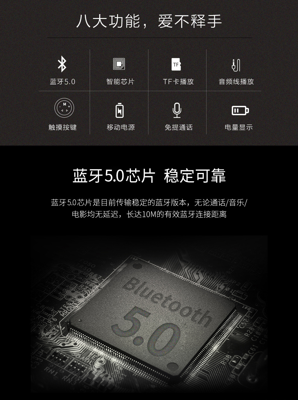 | Bluetooth solution: Bluetooth 5.0, surround sound quality for clear calls |