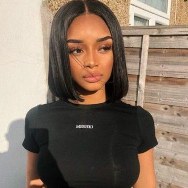 Styleside-parted short straight hair