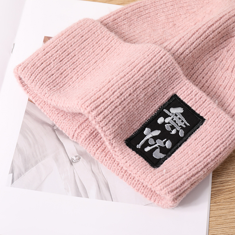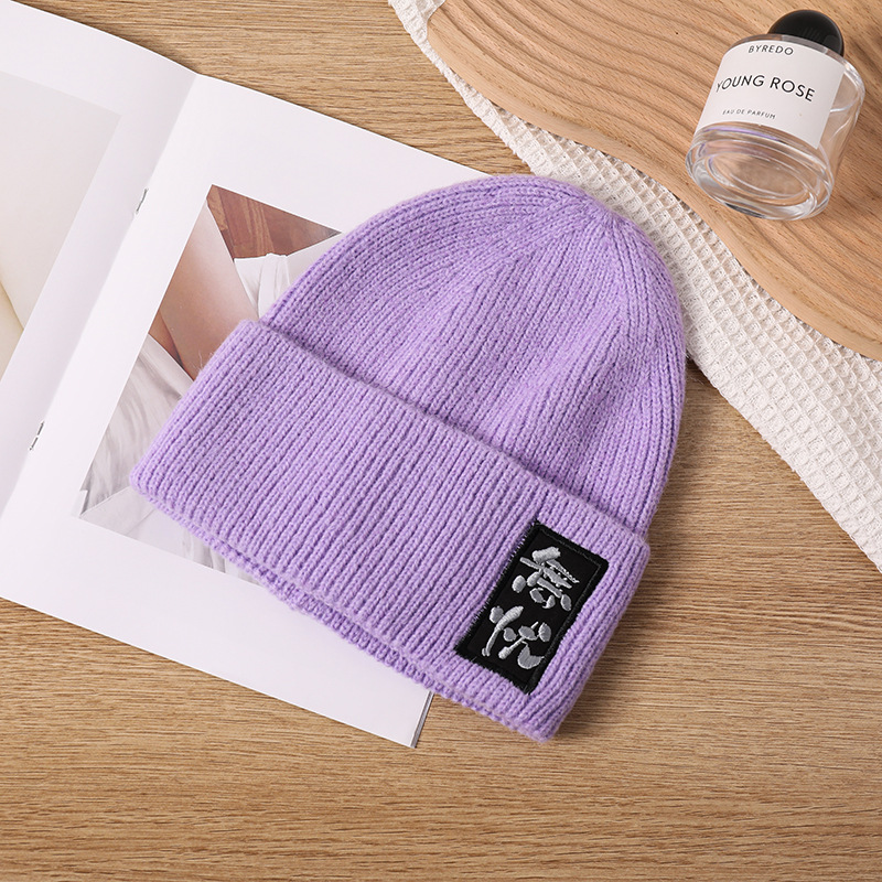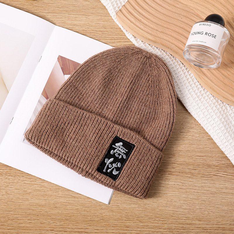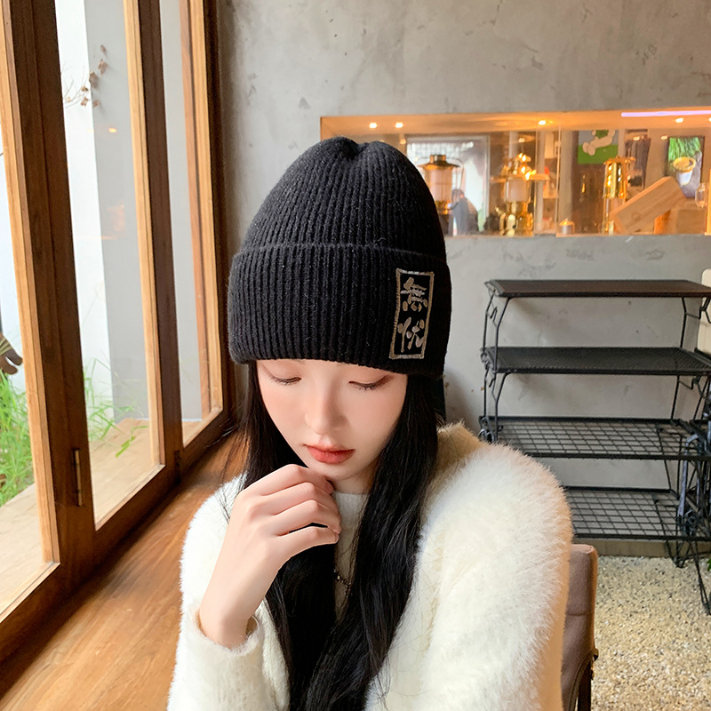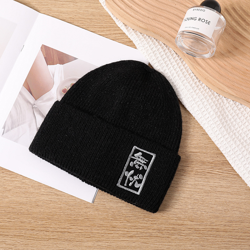 Chinese Character Knitted Hat Autumn and Winter Chinese Style Fashion Chinese Character Embroidery Woolen Cap Men's and Women's Worry-Free Embroidery Warm Hat