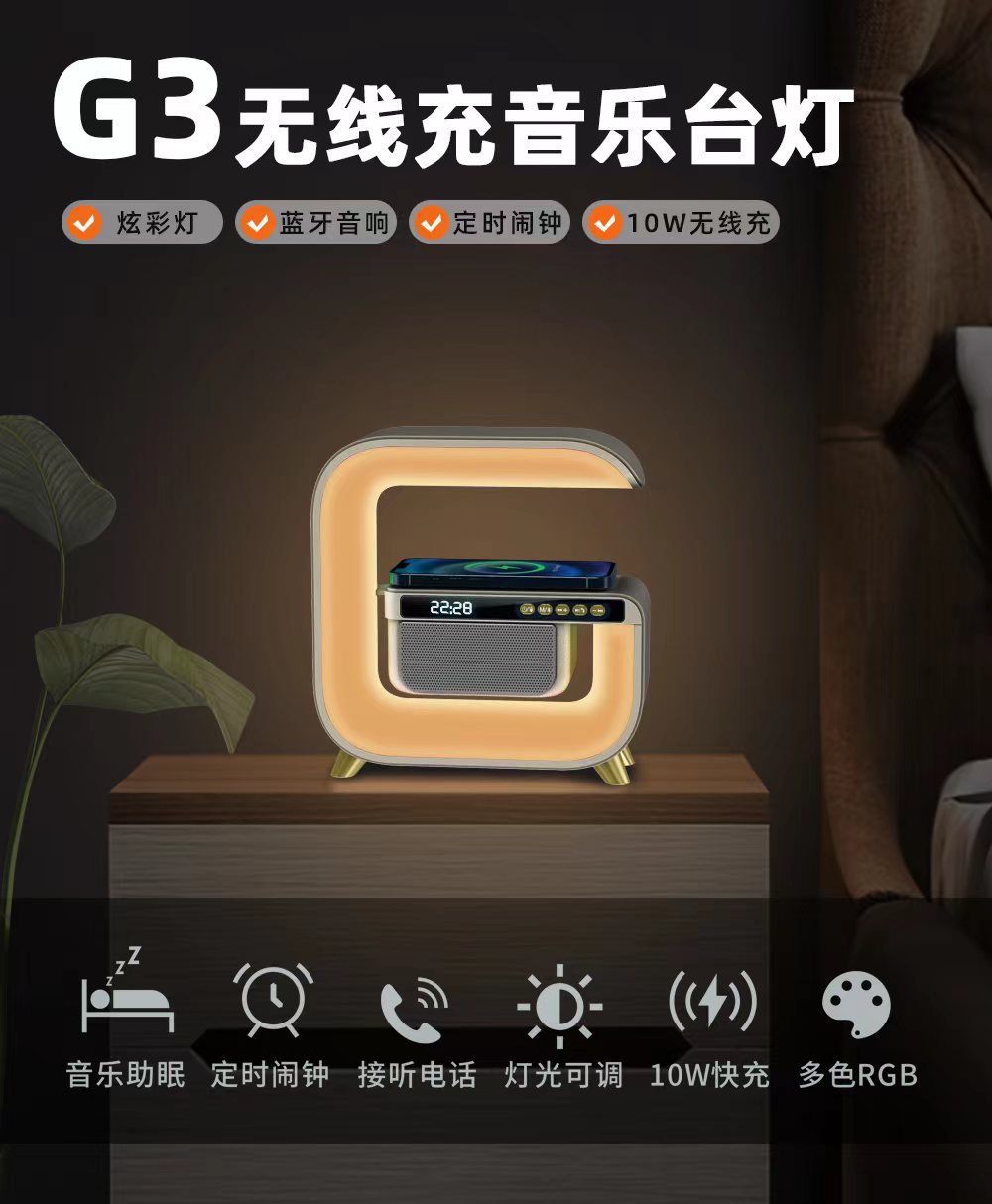 G3 Wireless Charging Bluetooth Stereo Light Alarm Clock High Sound Quality Home Large G Bluetooth Speaker Desktop Ambience Light