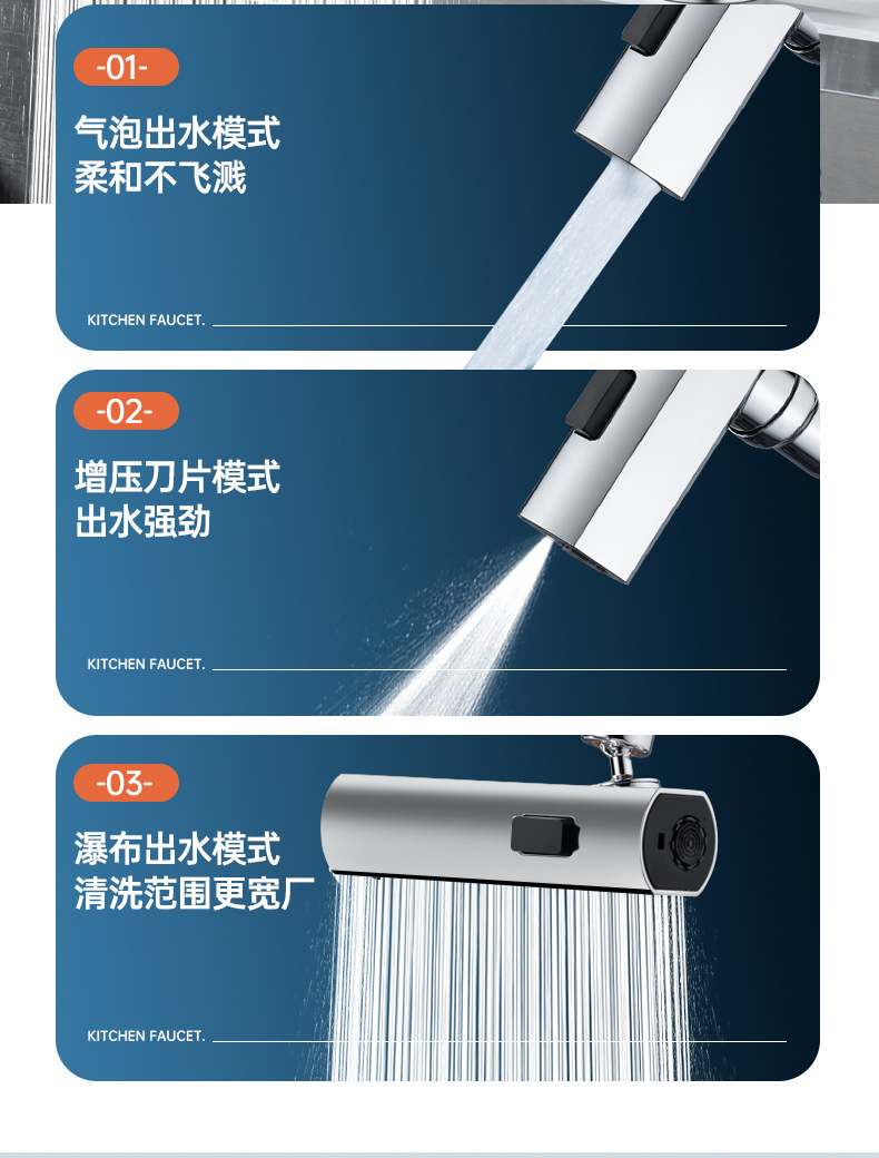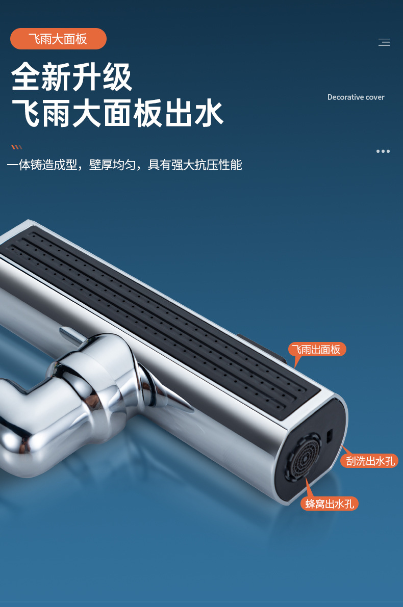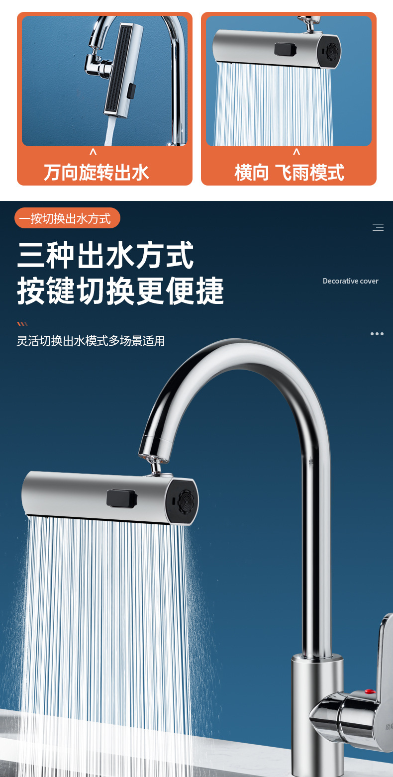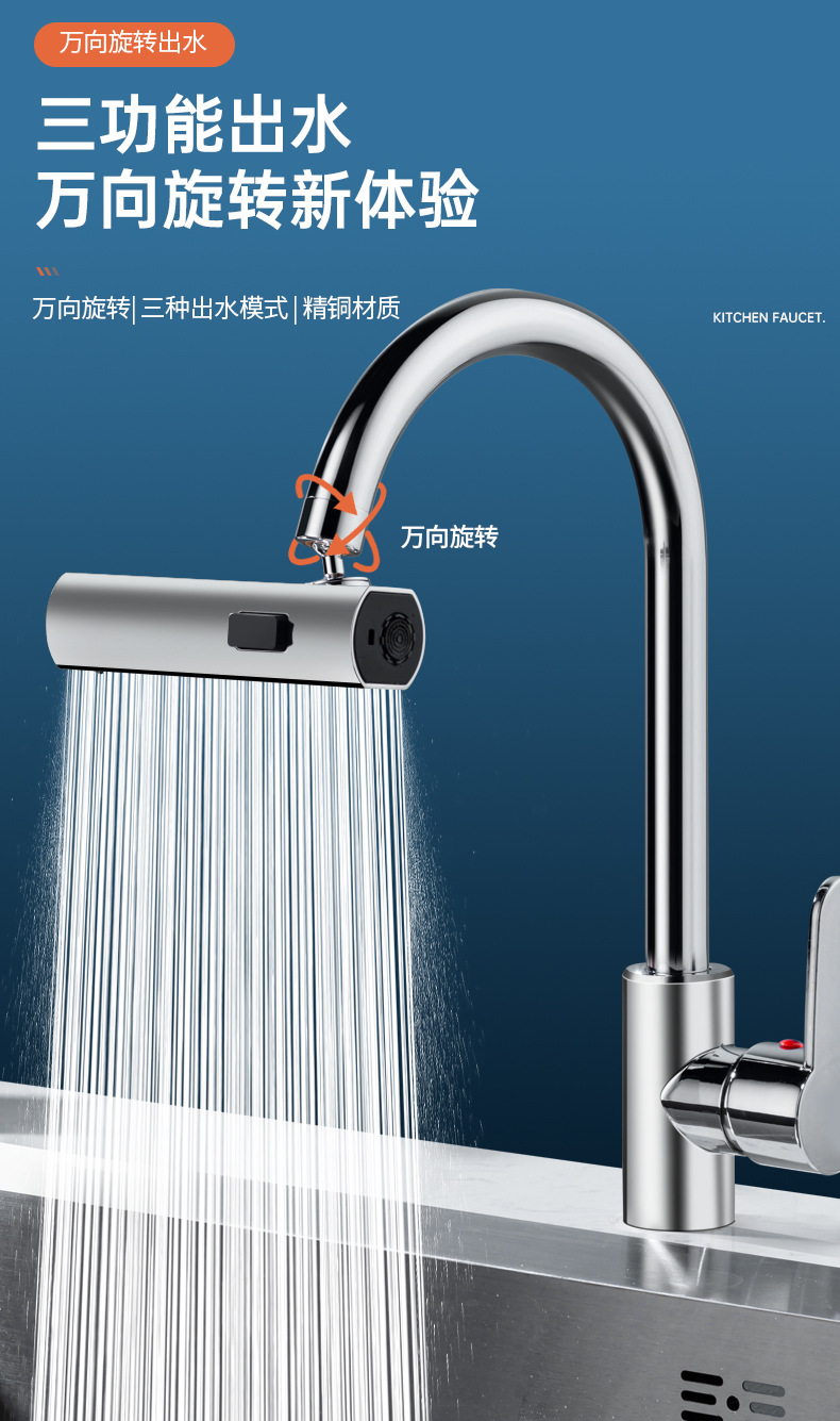 flat head three-function flying rain water faucet