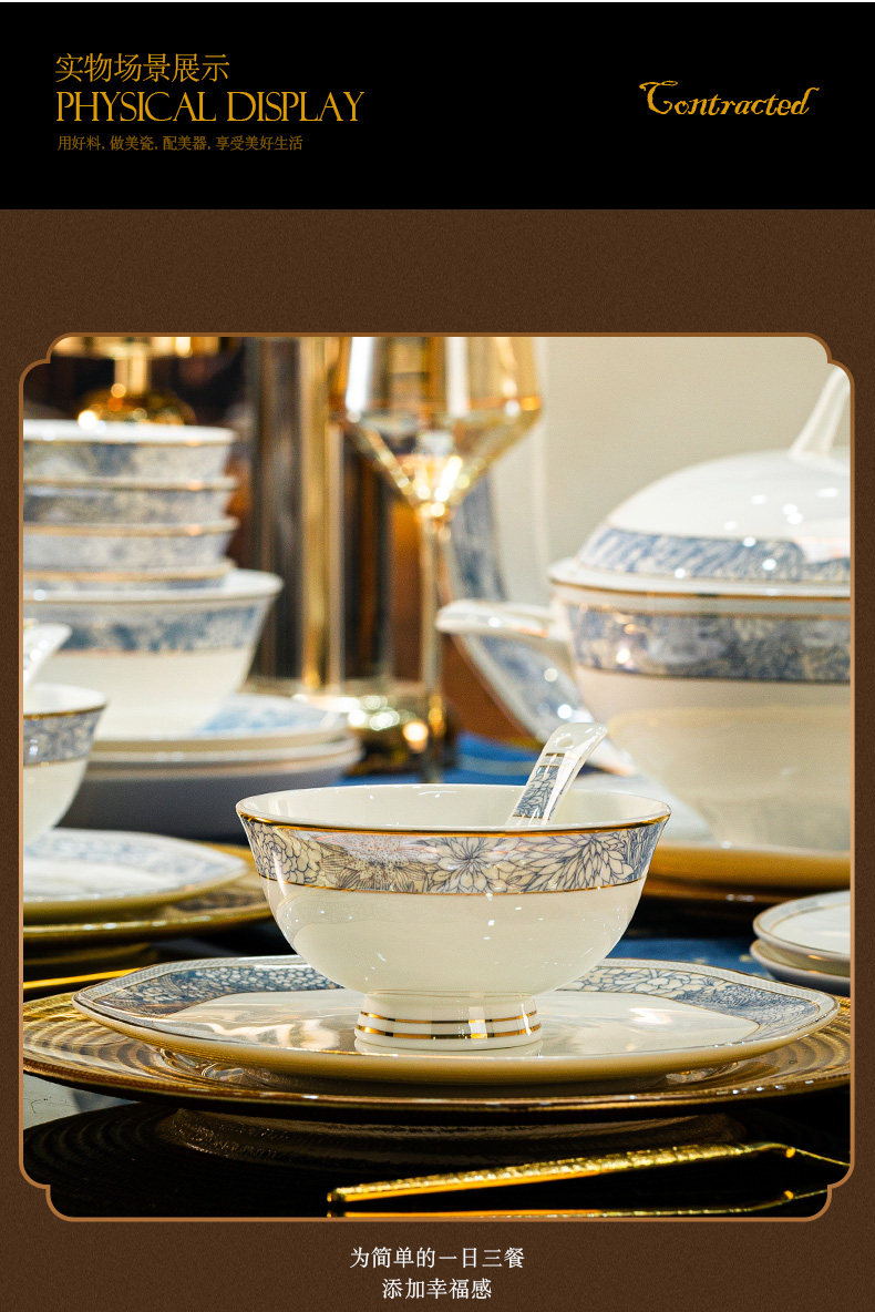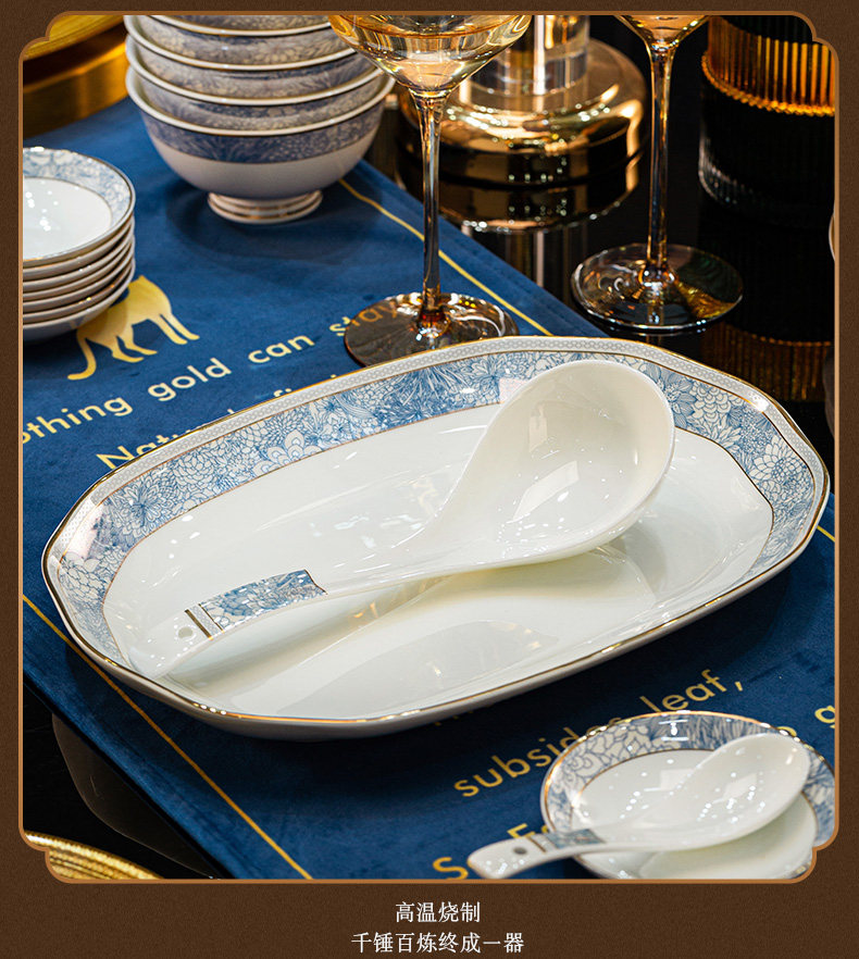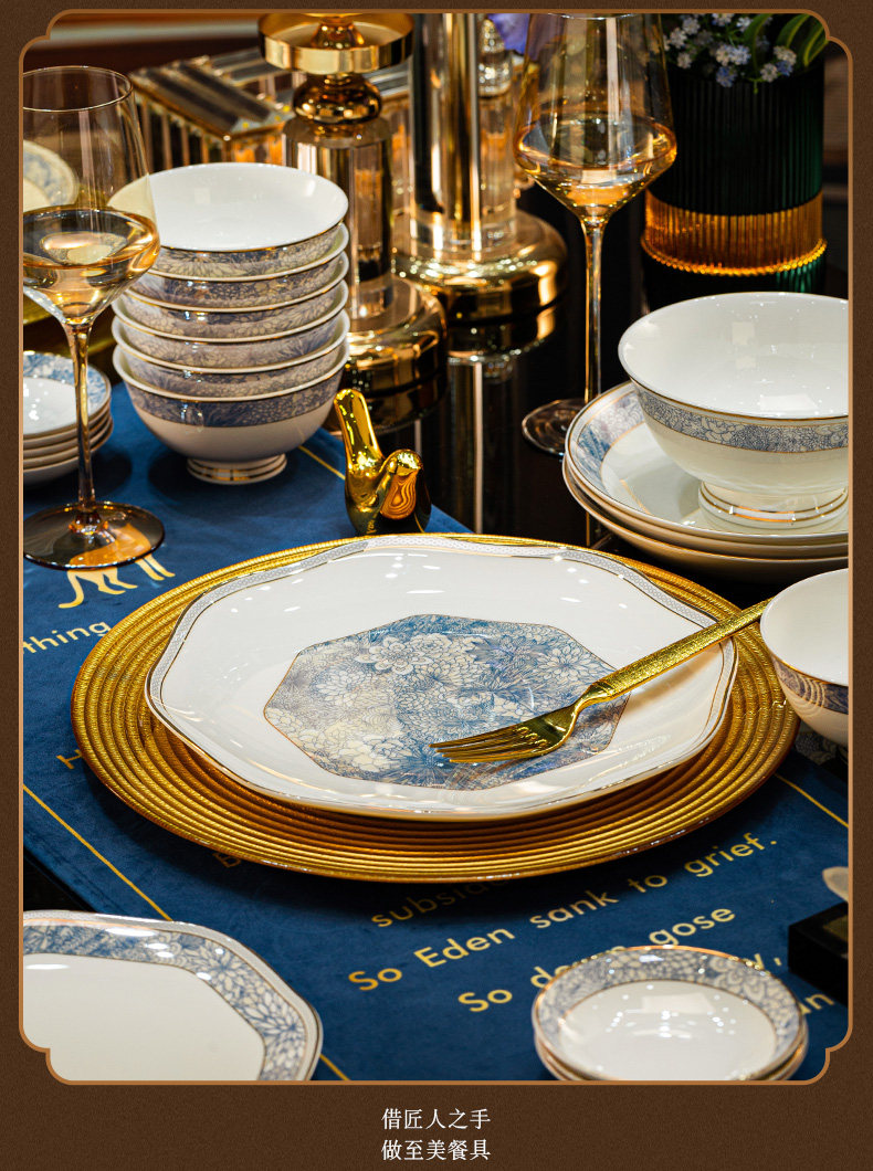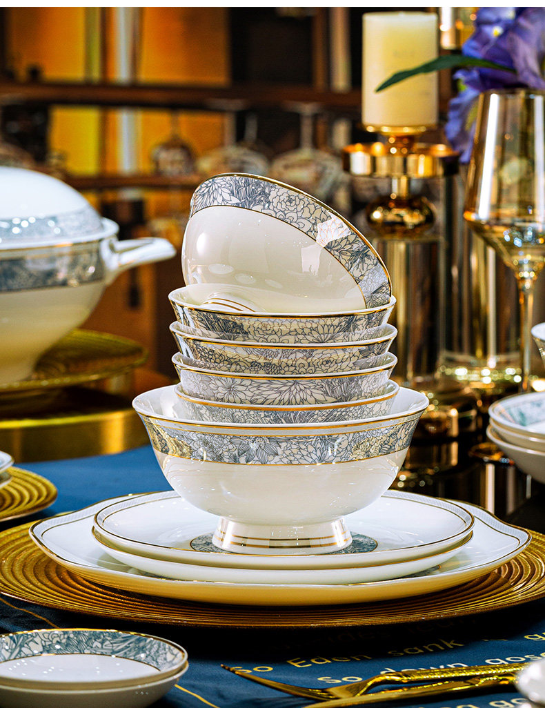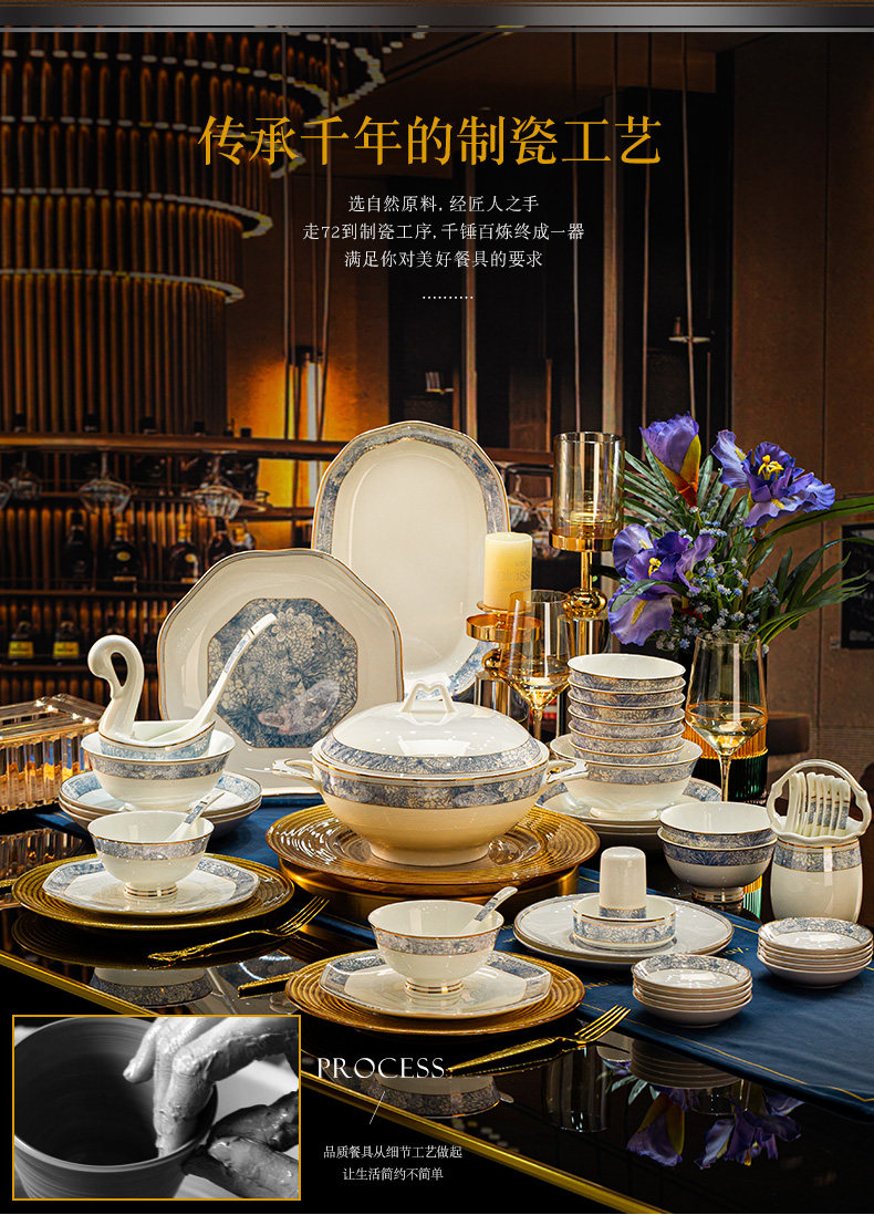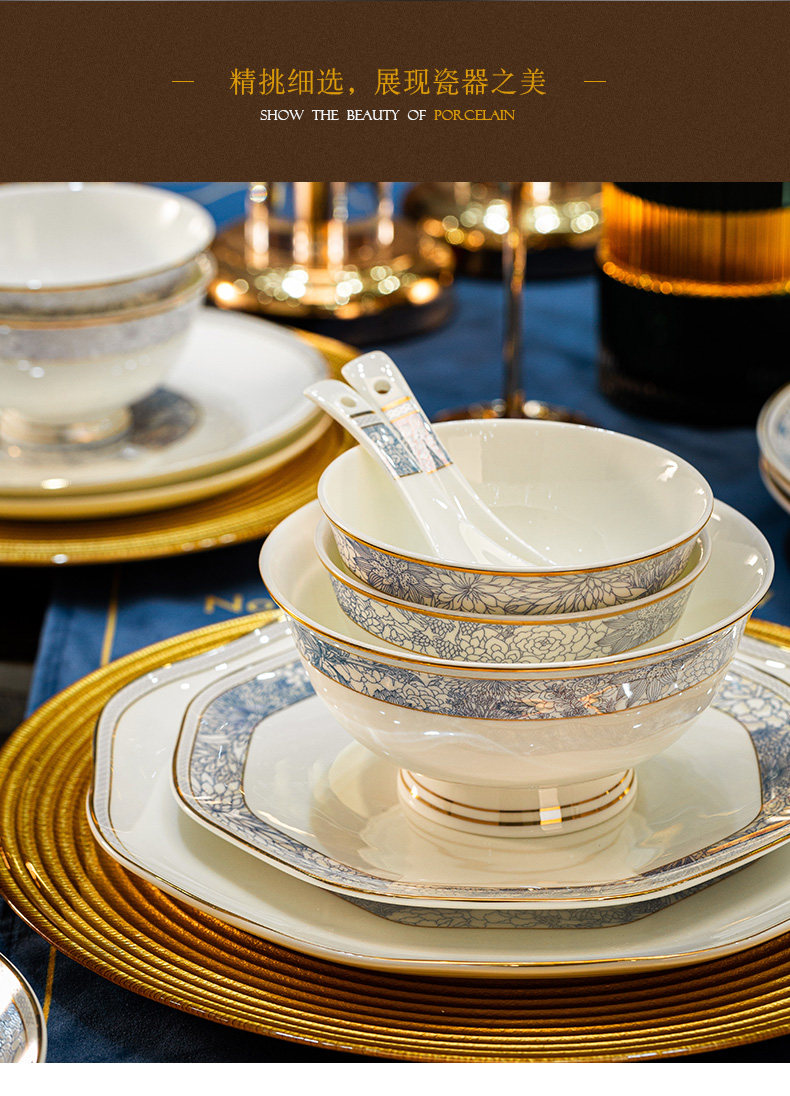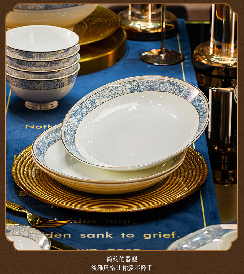 dishes set household light luxury high sense bone china tableware suit tangshan ceramic housewarming gift