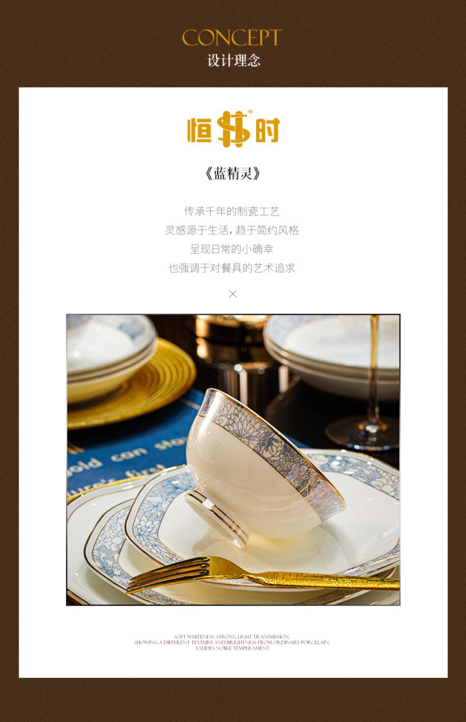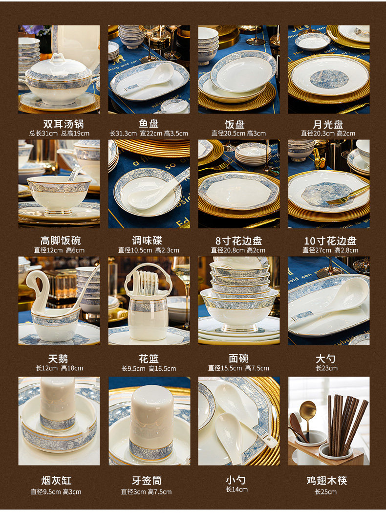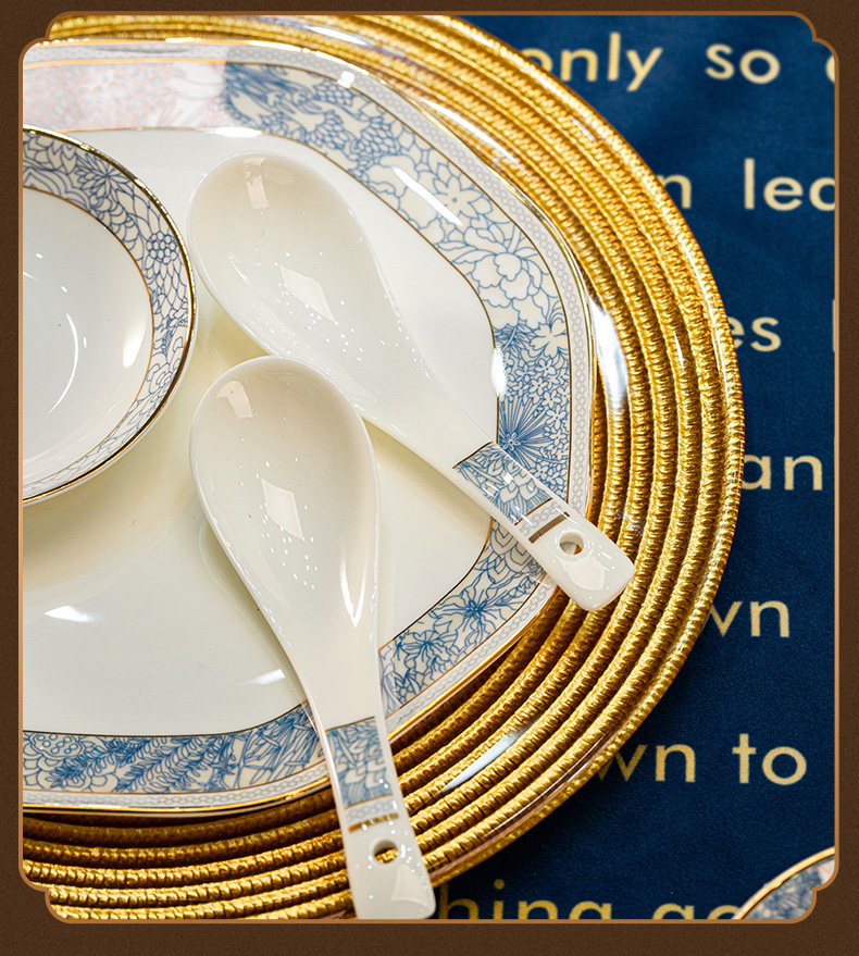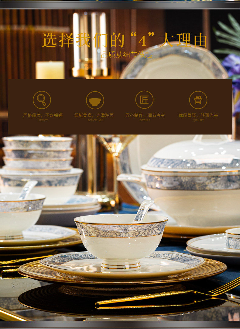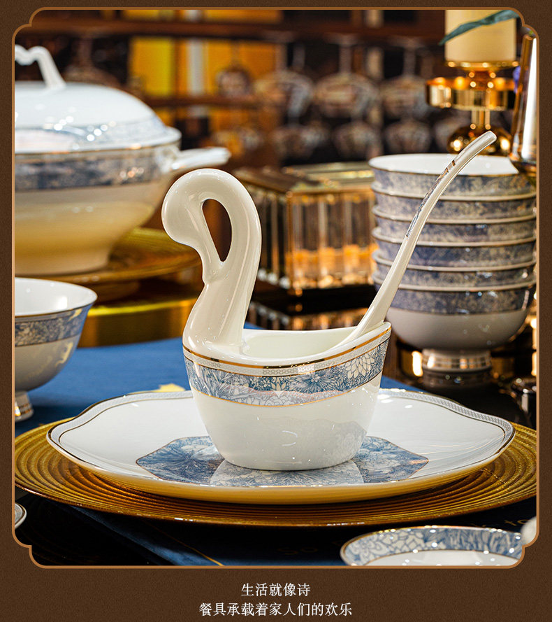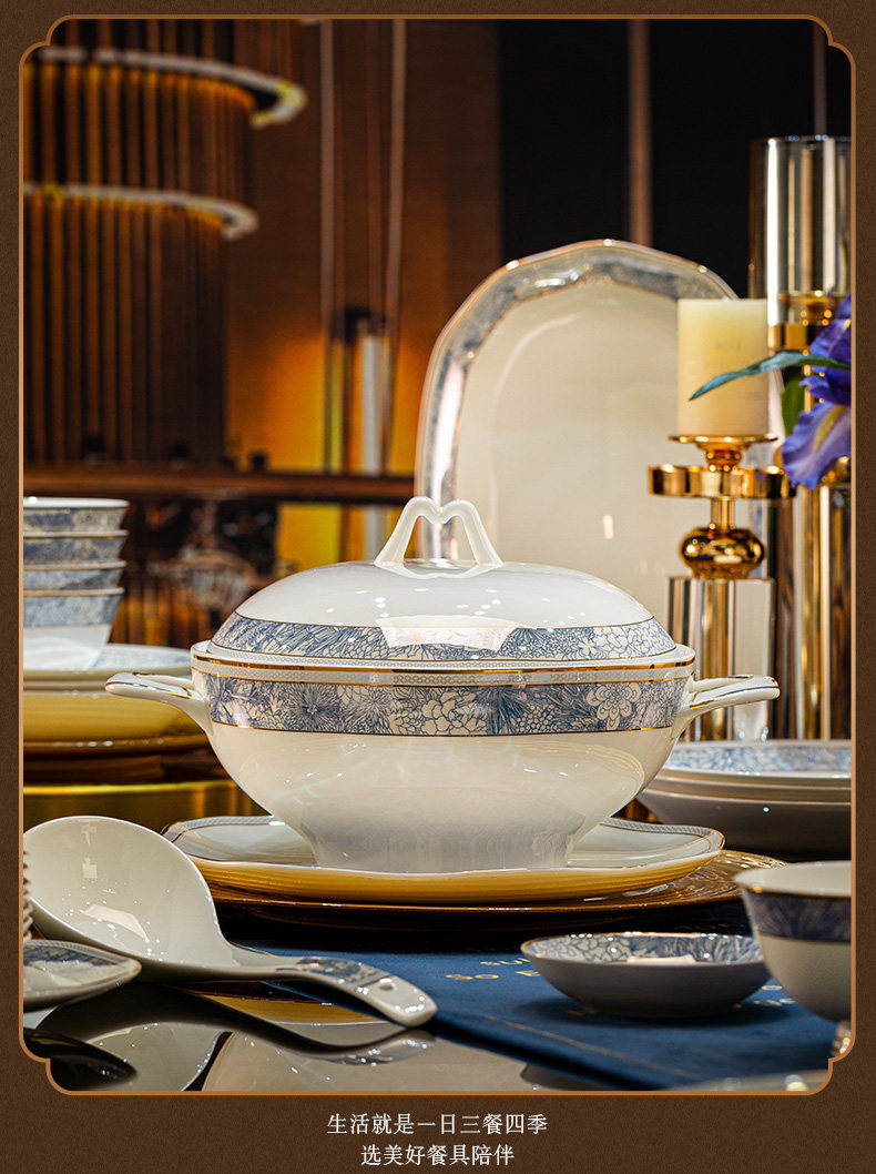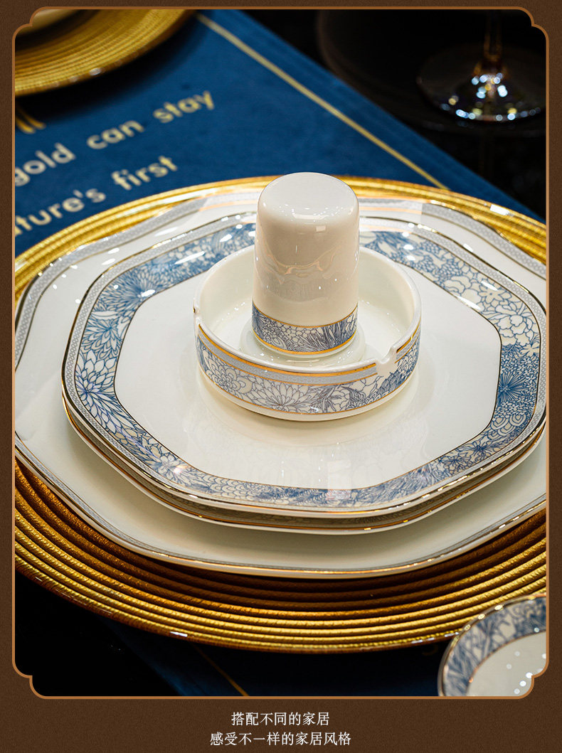 dishes set household light luxury high sense bone china tableware suit tangshan ceramic housewarming gift