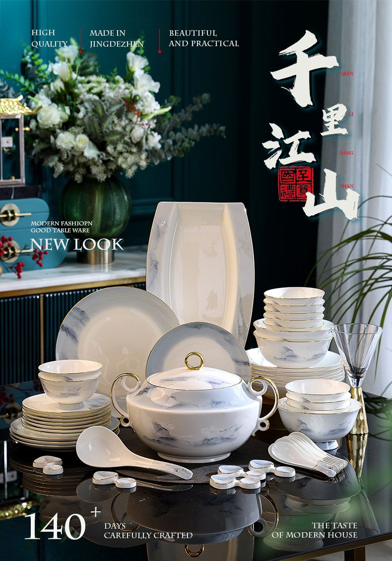 qianli jiangshan tangshan high-grade bone china bowl ceramic bowl plate noodle bowl rice bowl set gift