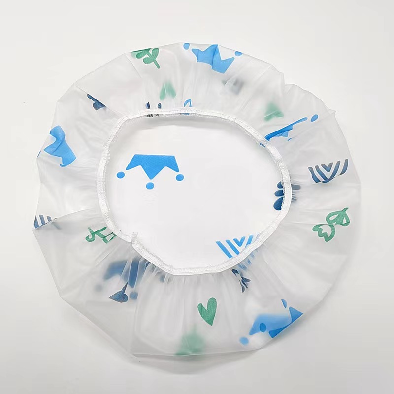 Colorful PEVA Shower Cap Thickened Waterproof Hood Dustproof Frosted Cartoon Printing Reusable Disposable Shower Cap